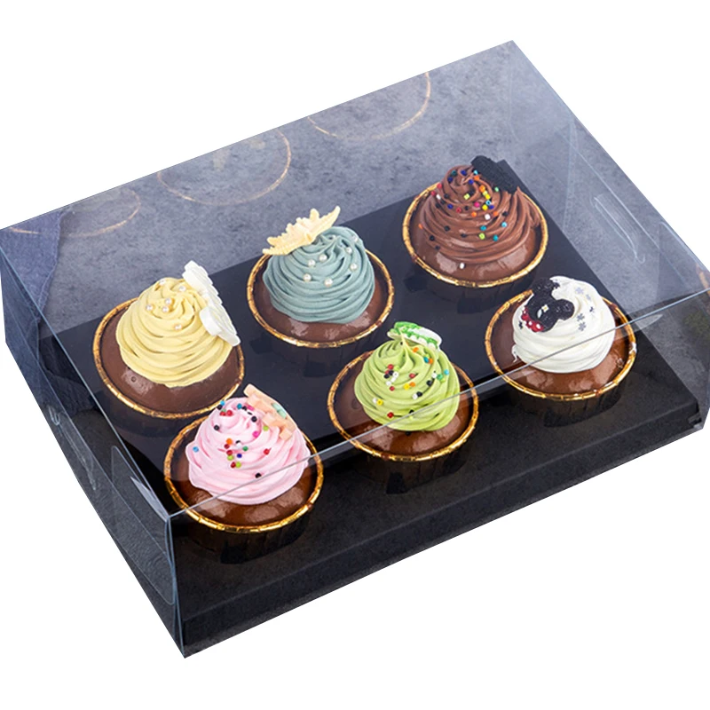 Прозрачная коробка для кексов, внутренний лоток может держать 4,6 и 12.прозрачная защитная пленка предотвращает появление царапин перед использованием и влияет на внешний вид.