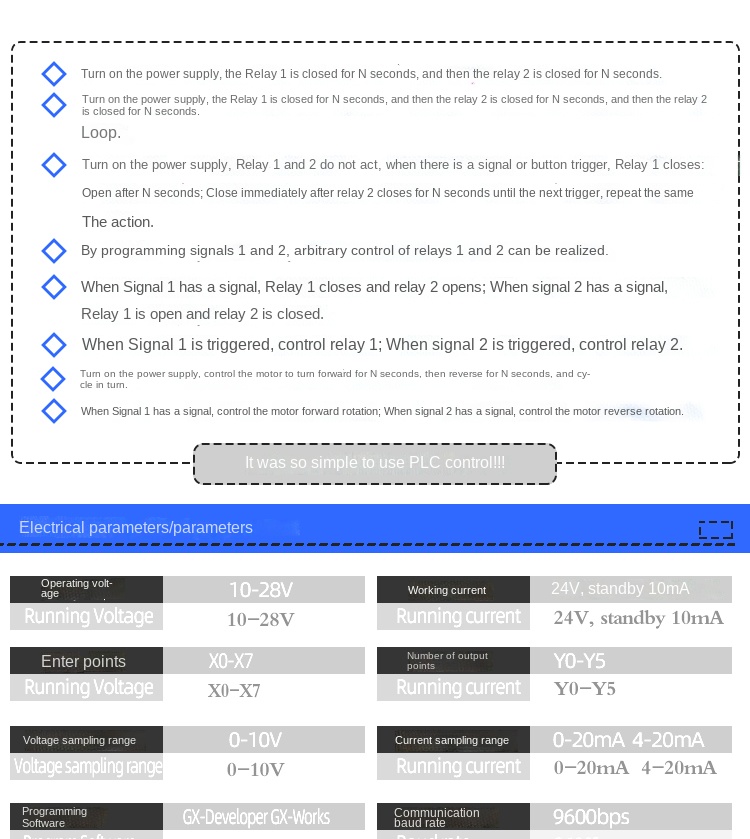 Эта плата является ПЛК-платой, непосредственно использует программное обеспечение для программирования Mitsubishi GX для компилирования трап-схемы, непосредственно записывается в ПЛК и может отслеживаться онлайн, И цена даже дешевле, чем однокристальная плата.