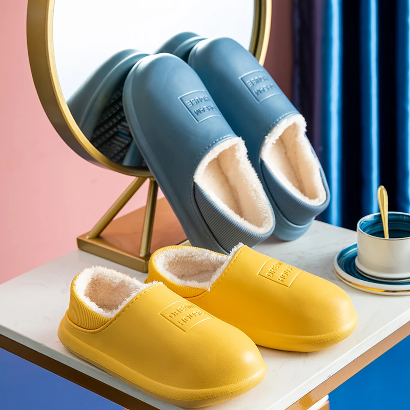 2021 г., зимние хлопковые тапочки Водонепроницаемая женская домашняя теплая женская обувь уличные ботинки для дома кожаная мягкая домашняя хлопковая обувь