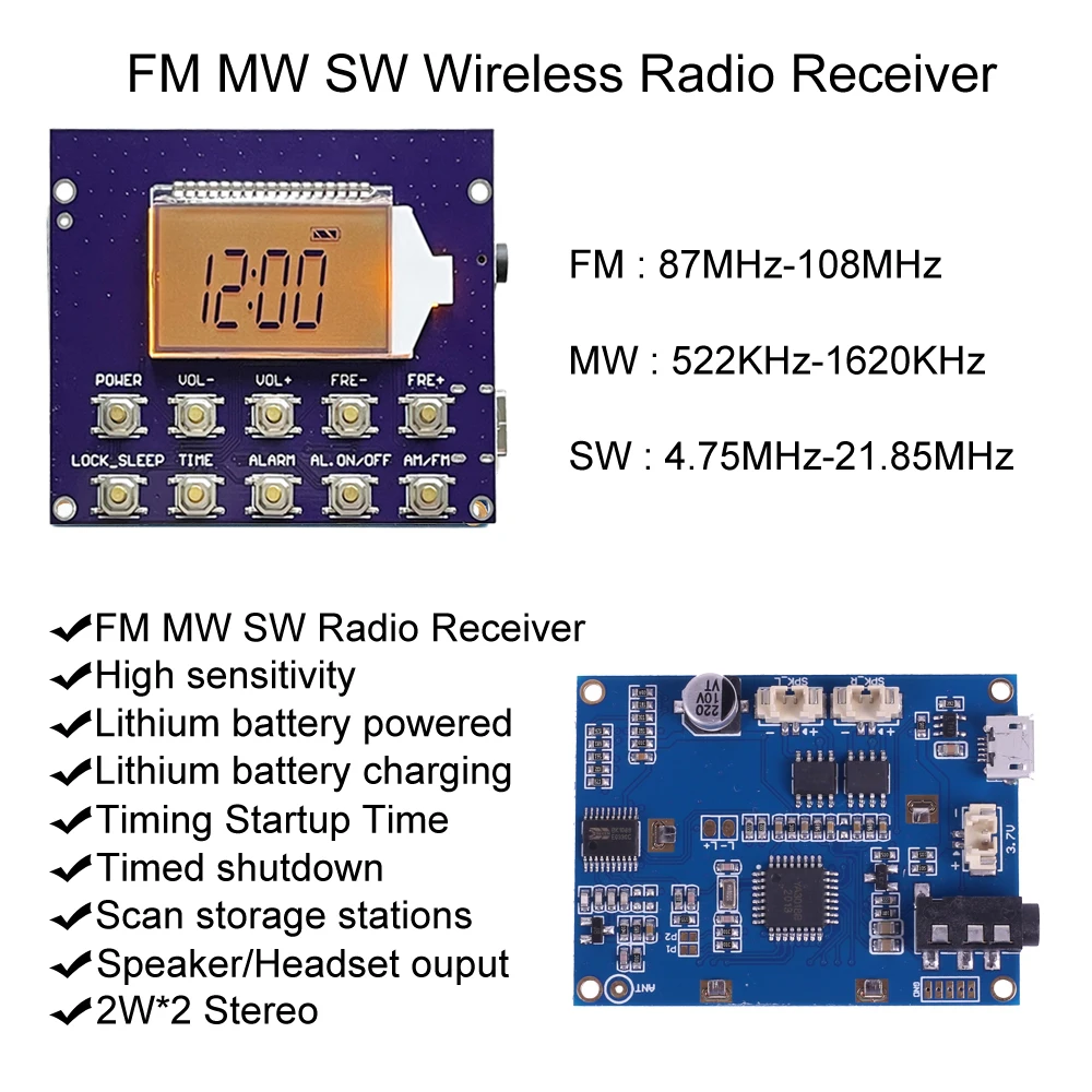 Полнодиапазонный FM радио MW и SW модуль приемника цифровые часы дисплей 87-108 МГц настройка частоты станция автоматического хранения короткой средней волны