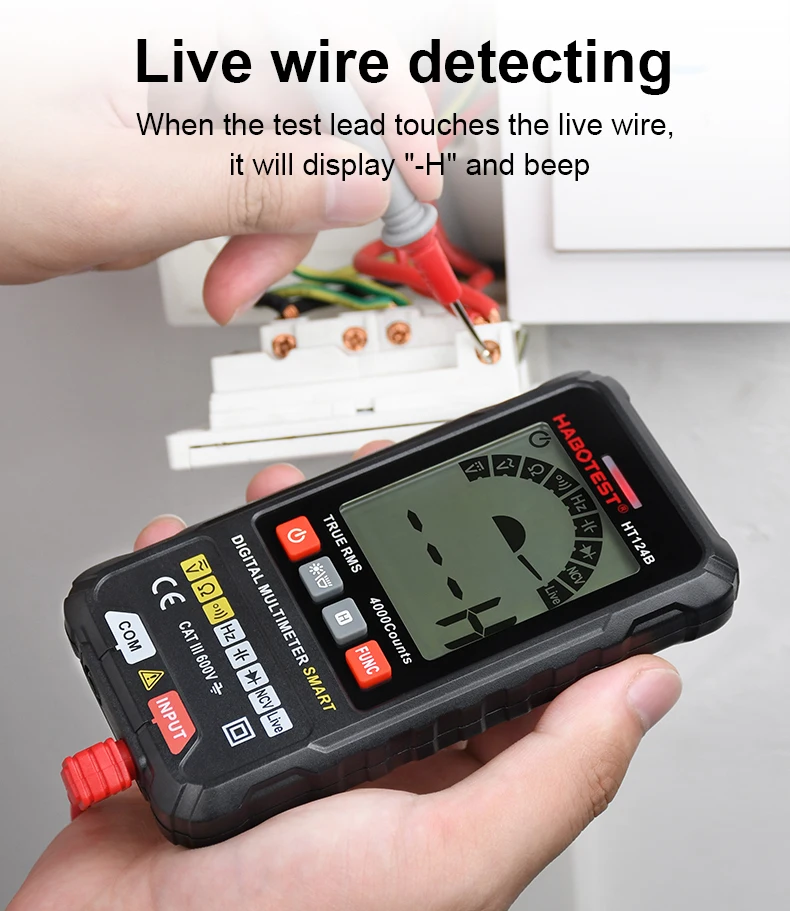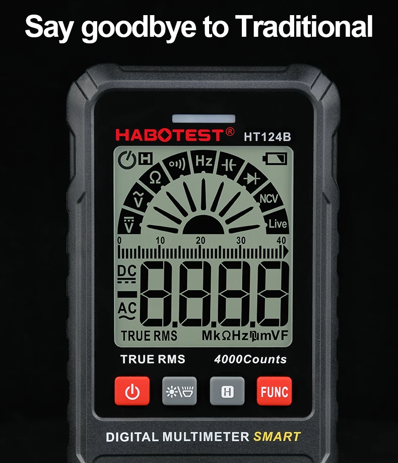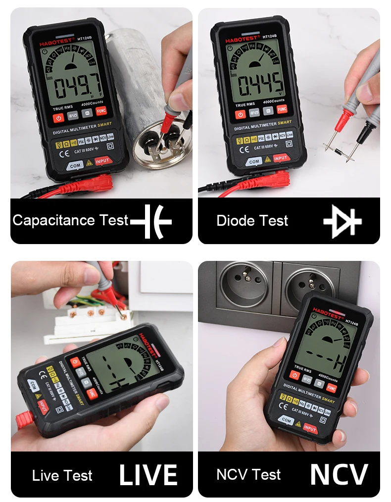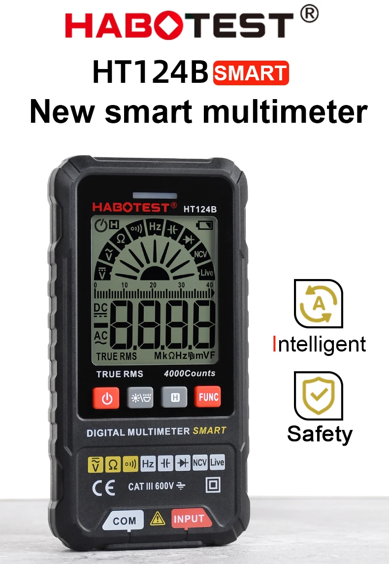 HABOTEST HT124B электрик инструменты Muiltimeter цифровой умный измеритель DMM тестер AC DC напряжение обнаружения Ом Емкость TRMS Hz диод тестер