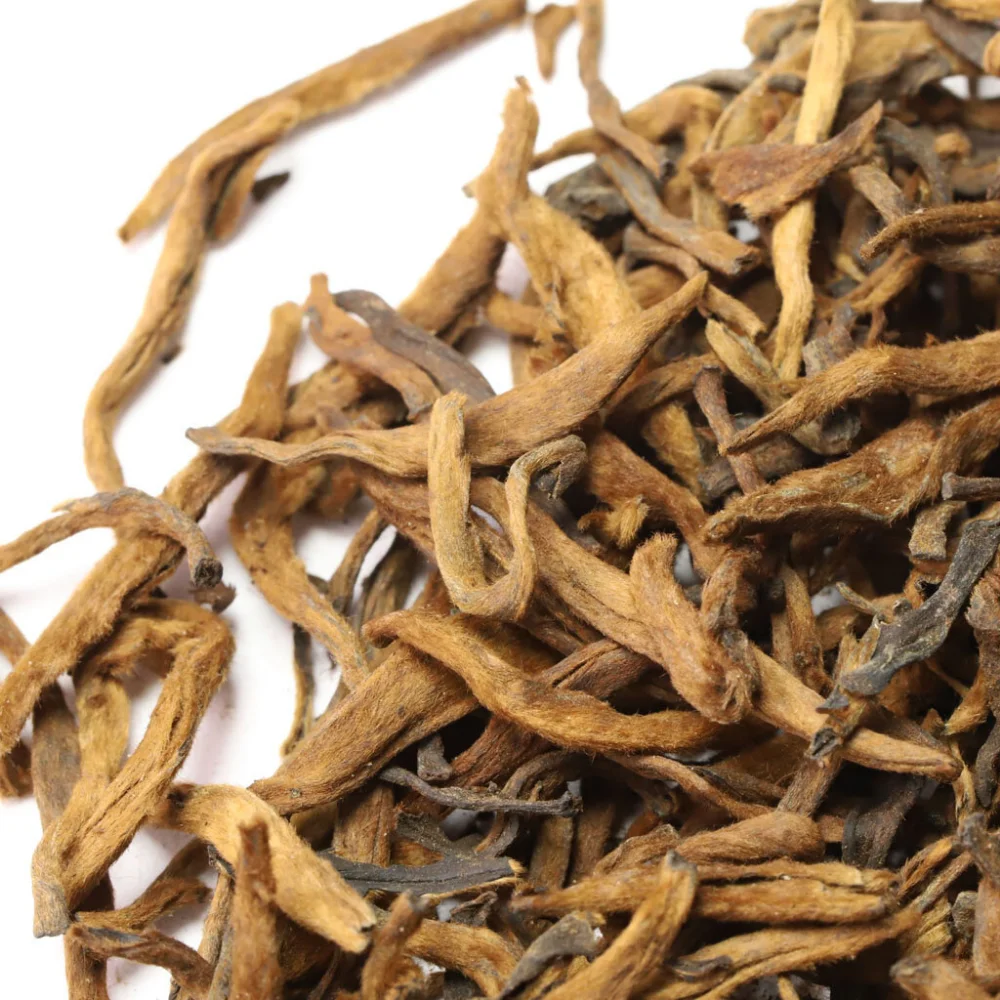 Ча Хуан или Золотой Пуэр – достойное пополнение чайной коллекции любого гурмана. Столь необычное название чай получил благодаря оттенку готового напитка – золотисто-коричневому. Для его приготовления собирают верхние листочки и почки, которые подвергаются бережной ферментации для сохранения нежных ворсинок на их поверхности.