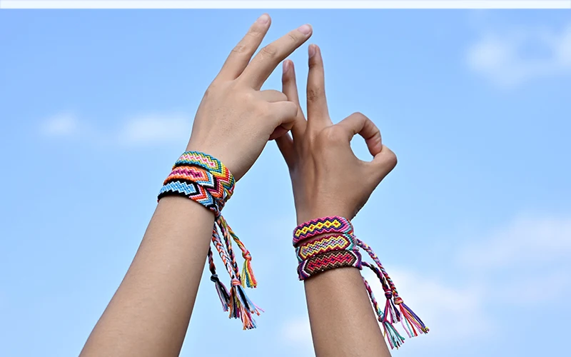 Название продукта: богемный плетеный браслет дружбы для женщин, модные плетеные браслеты ручной работы с цветной нитью в стиле бохо для девушек