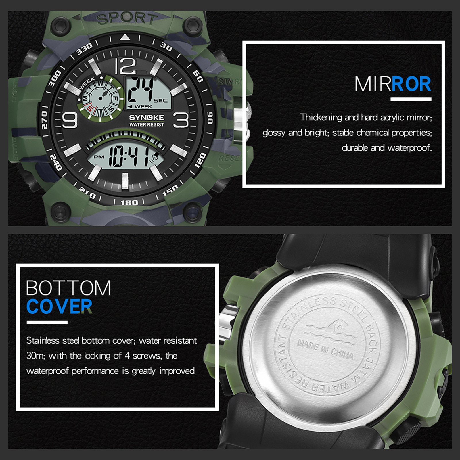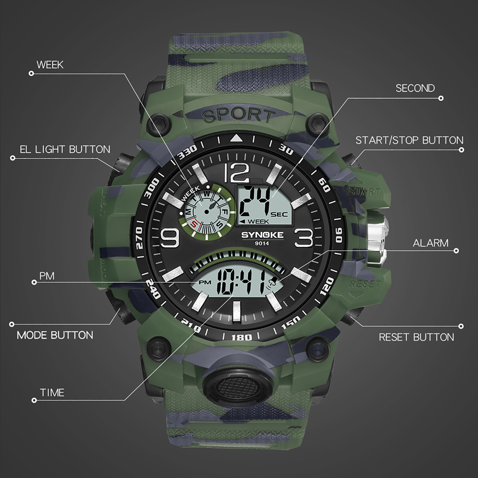 Мужские электронные спортивные часы, многофункциональные уличные спортивные часы с большим экраном