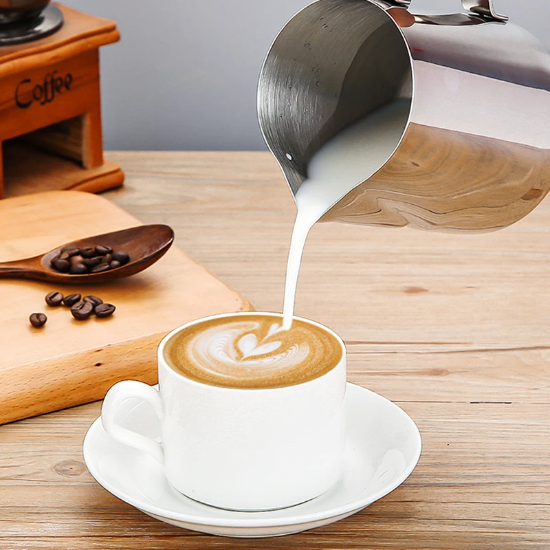 ☕【Широкое применение 】Кувшин Для отпаривания молока может помочь вам многими способами, такими как пенообразователь или отпаривание молочного крема для латте, измерение жидкостей, подача молока или крема. Вы можете использовать его дома, в офисе, кафе или отеле. Кувшин для одежды также может стать прекрасным подарком для вечеринок или фестивалей.