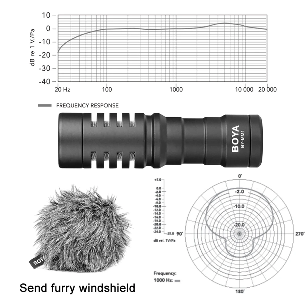 BOYA BY-MM1-это кардиоидный микрофон, который специально разработан для улучшения качества звука видео на основе встроенных микрофонов. Как с кабелем TRS, так и с выходным кабелем TRRS, он может использоваться на смартфонах, камерах, видеокамерах, аудио-регистраторах, ПК и других аудио/видео записывающих устройствах. BOYA BY-MM1 выпускается в компактном размере и легком алюминиевом дизайне, это не будет тяжелой нагрузкой во время съемки. Подключи и играй дизайн, не нужно беспокоиться о состоянии батареи. Прилагаемое Противоударное Крепление эффективно уменьшает нежелательные вибрации, кабель и шум при обращении.