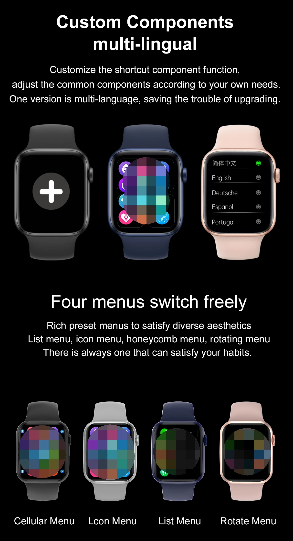 Watch support language: Simplified Chinese, English, German, Russian, Portuguese, Spanish, Japanese, Korean, Vietnamese. Arabic, Thai, French, Italian, Polish, Persian, Greek, Danish, traditional Chinese, Latin, Romanian, Turkish, Hebrew, Czech.