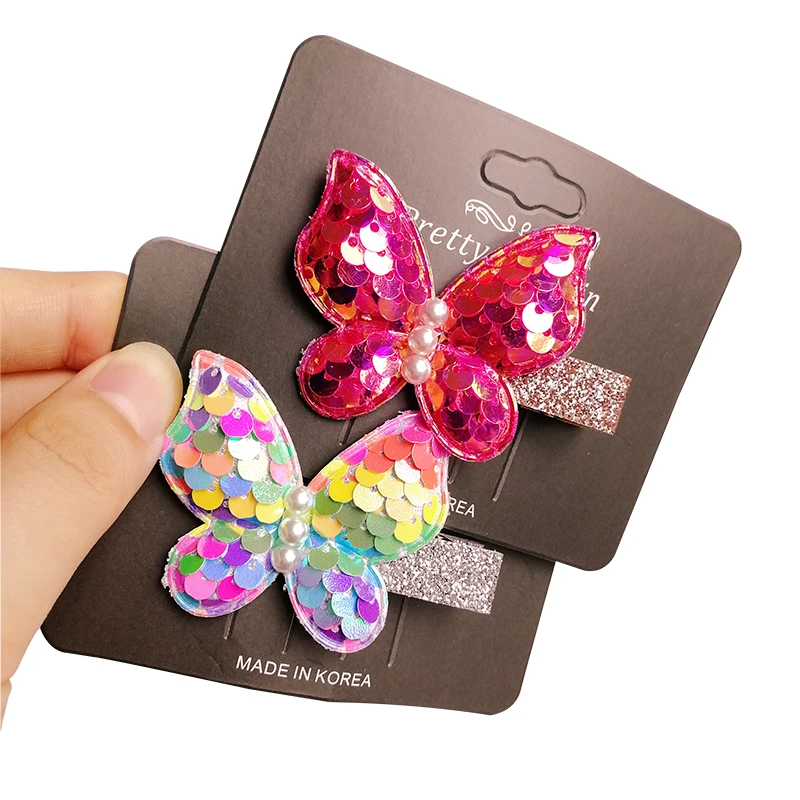 Розничная продажа, 1 шт., модные милые блестящие заколки-бабочки, градиентные радужные заколки для волос с блестками, заколки для волос принцессы, аксессуары для волос