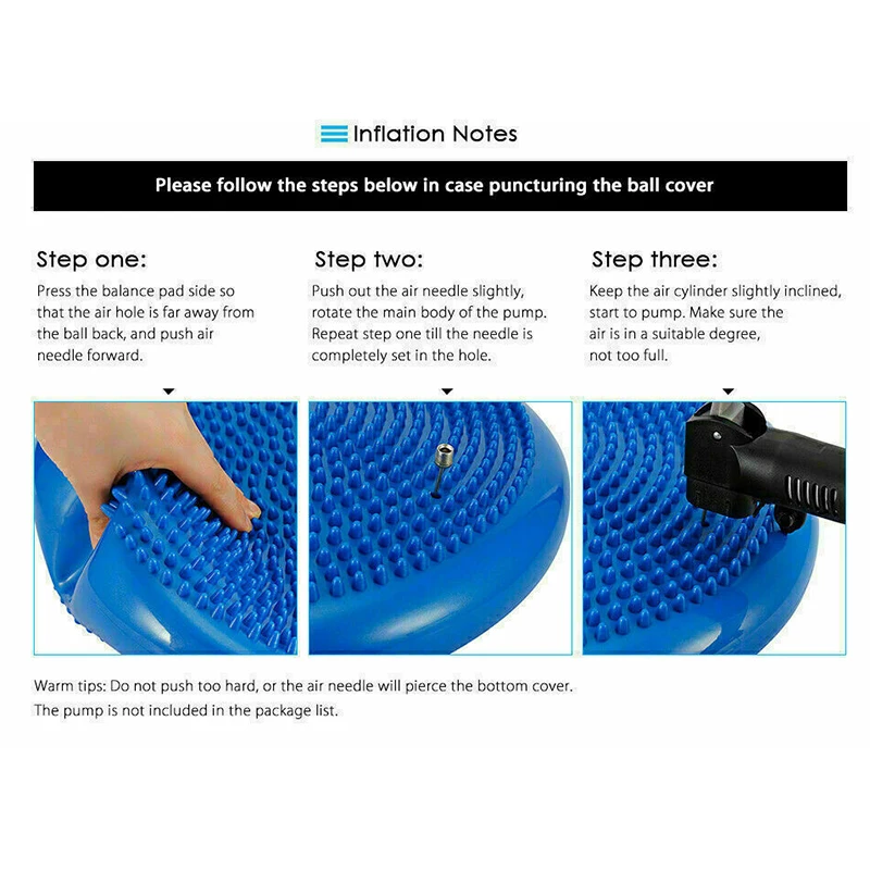 【Inflation Pump Included】-баланс диска 34 см/13,4 дюйма в диаметре, и максимальный предел веса 450 фунтов. Включает в себя легконадуваемый насос, вы можете надуть до разной степени полноты, чтобы настроить его на идеальные высоты.