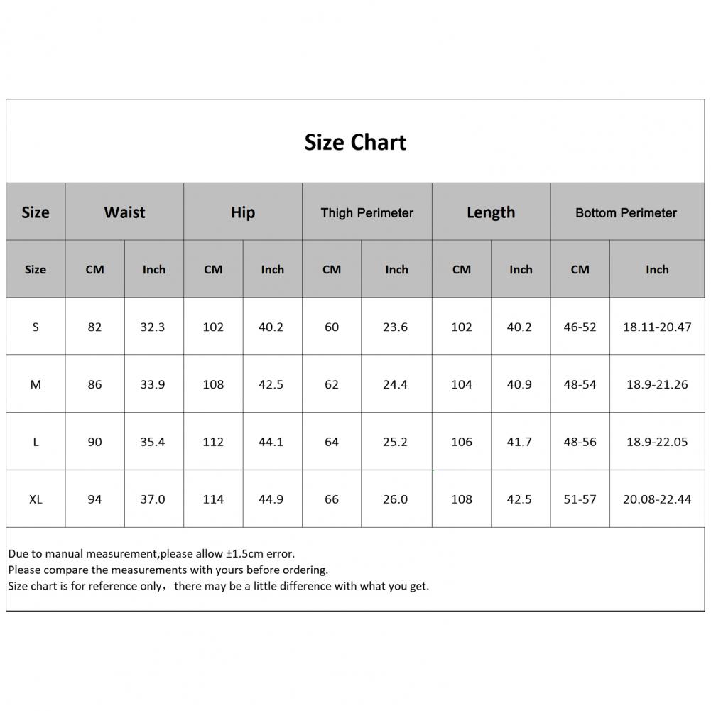 [Our Size XL] Waist: 94cm/37", Hip: 114cm/44.9", Thigh Perimeter: 66cm/26", Length: 108cm/42.5", Bottom Perimeter: 51cm-57cm/20.1"-22.4" (Approx.)