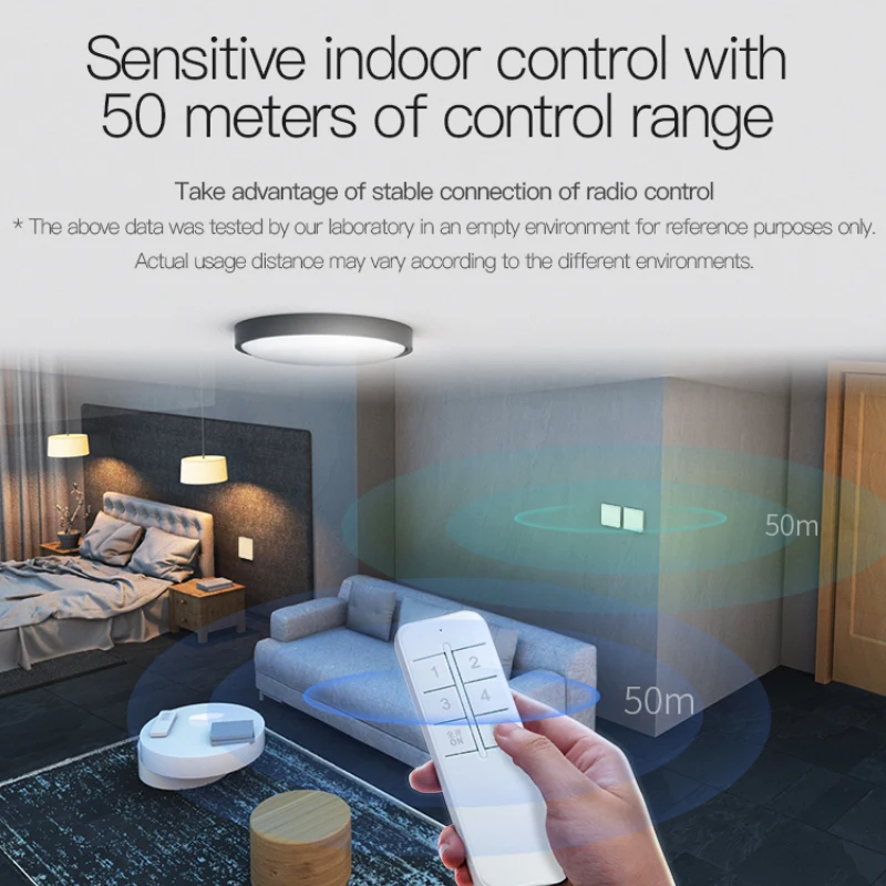 При использовании с пультом дистанционного управления 2,4G уникальный 8-клавишный дизайн может различать оборудование в каждой комнате дома по комнате и управлять всем оборудованием в разных комнатах с помощью разных клавиш. Он также может реализовывать Одно нажатие, когда выходите, DIY smart life, с этого момента. (За исключением 7 и 8 кнопок, которые фиксируются на полное включение и выключение, другие кнопки можно определить как переключатели, которые управляют несколькими устройствами в соответствии с их фактическими потребностями.)