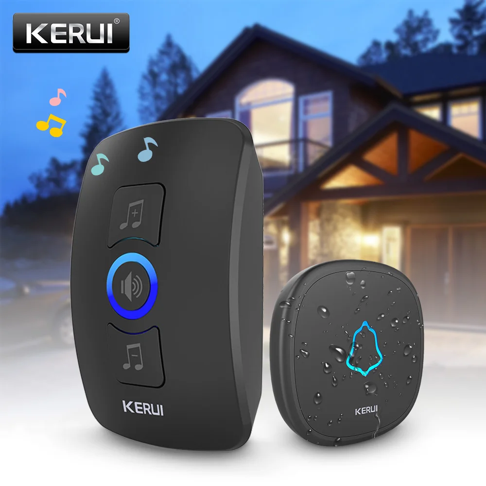 Беспроводной дверной звонок KERUI M525, 433 МГц, для домашней безопасности, водонепроницаемая сенсорная кнопка, 150 м, дальний умный дверной звонок, 32 Песни, регулируемый