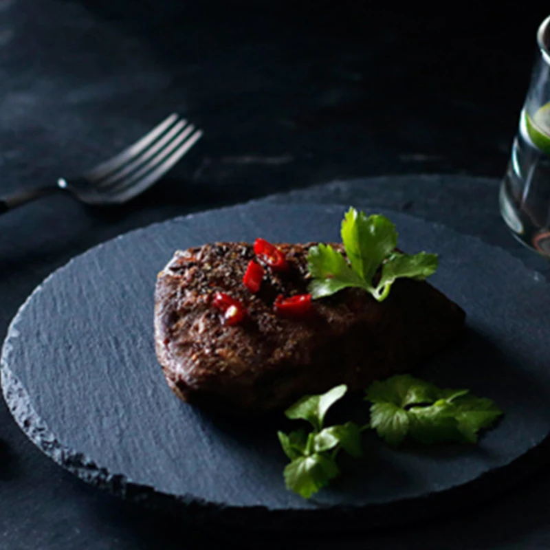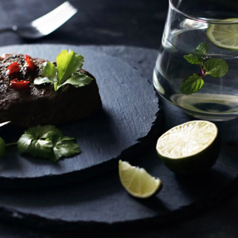 Шифер был протестирован для безопасности пищевых продуктов и относится к пищевой тарелке, которая может непосредственно держать еду. Натуральная текстура шифера подчеркивает качество вкусной еды