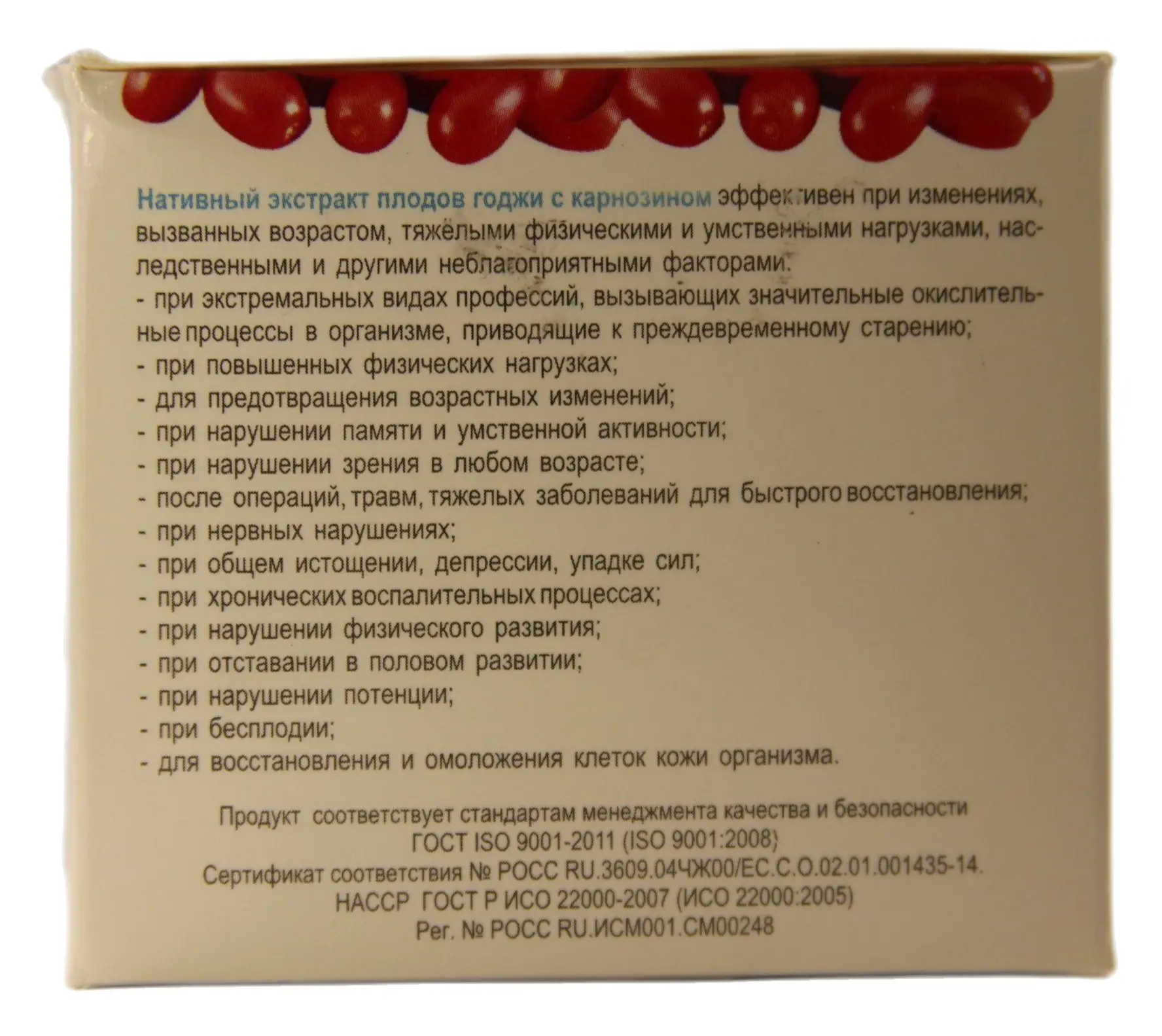 Состав:Густой фруктовый экстракт Годжи, Карнозин.