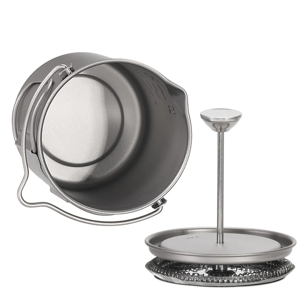 Этот титановый французский пресс-горшок очень удобен для приготовления собственного кофе. Он легкий и устойчивый к коррозии, хороший выбор для кемпинга на открытом воздухе, пеших прогулок, пикника, альпинизма и т. д.