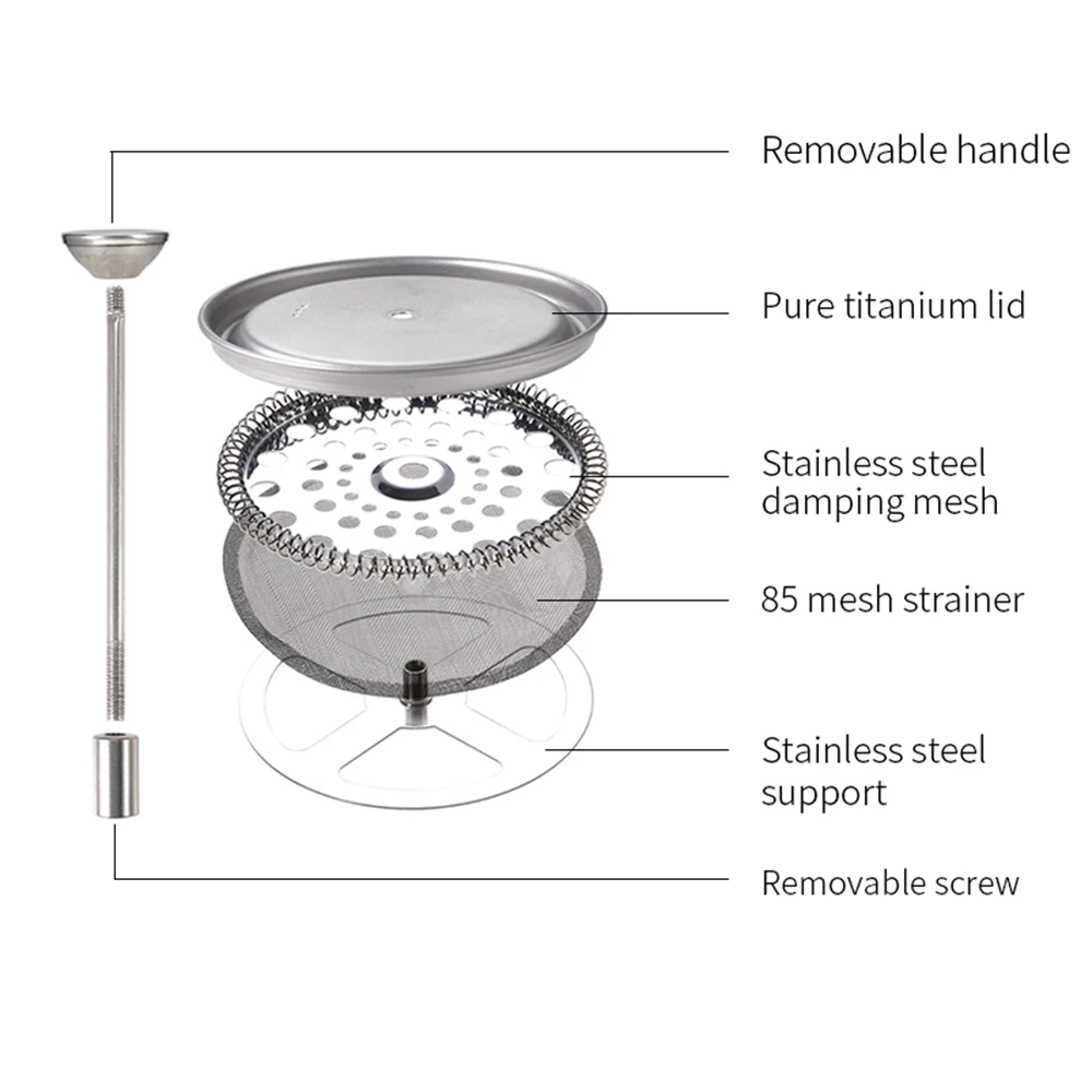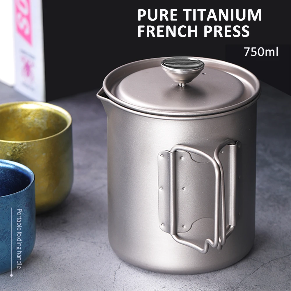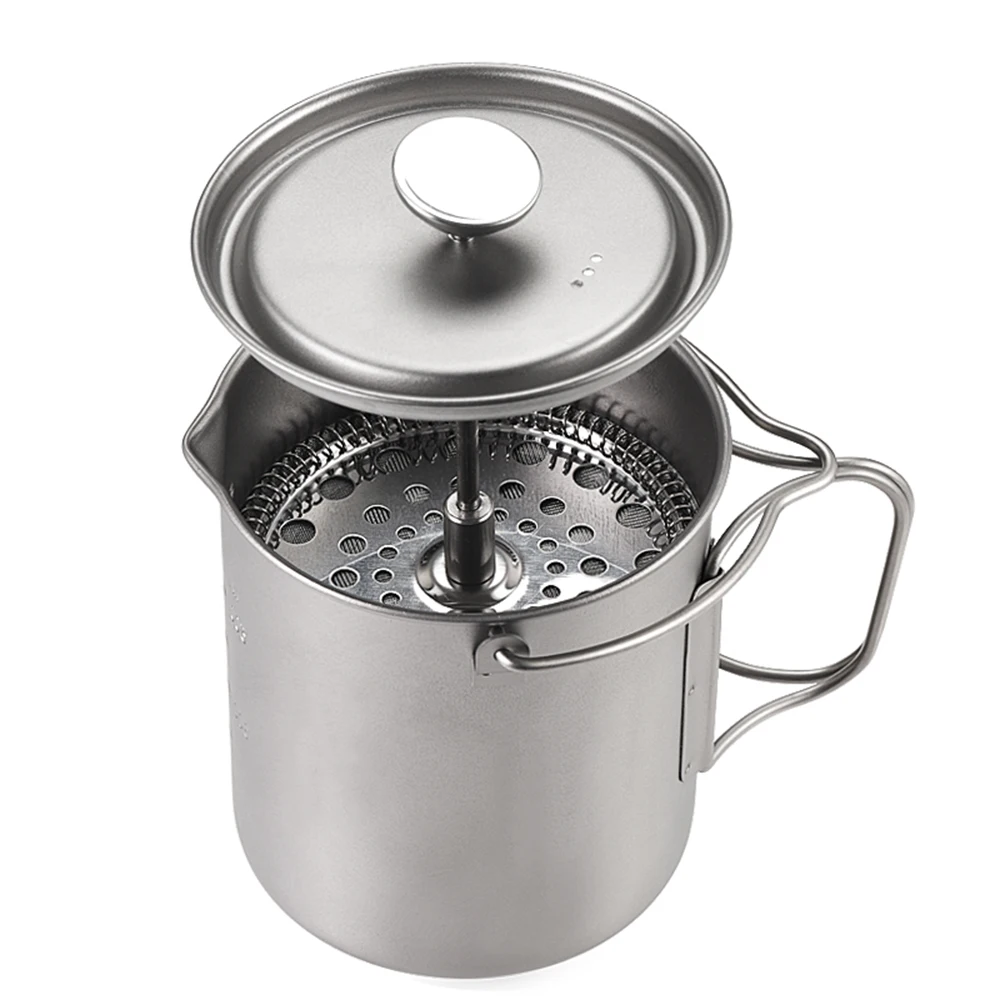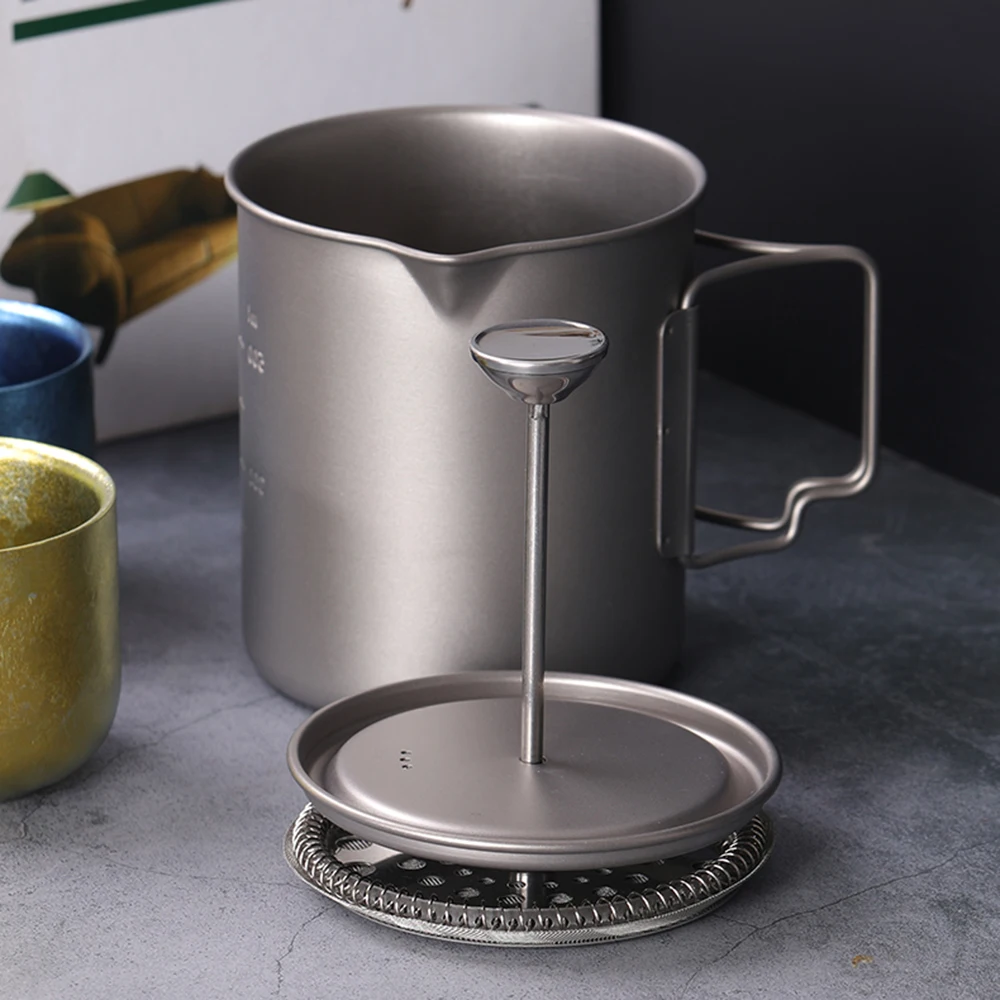 Этот титановый французский пресс-горшок очень удобен для приготовления собственного кофе. Он легкий и устойчивый к коррозии, хороший выбор для кемпинга на открытом воздухе, пеших прогулок, пикника, альпинизма и т. д.