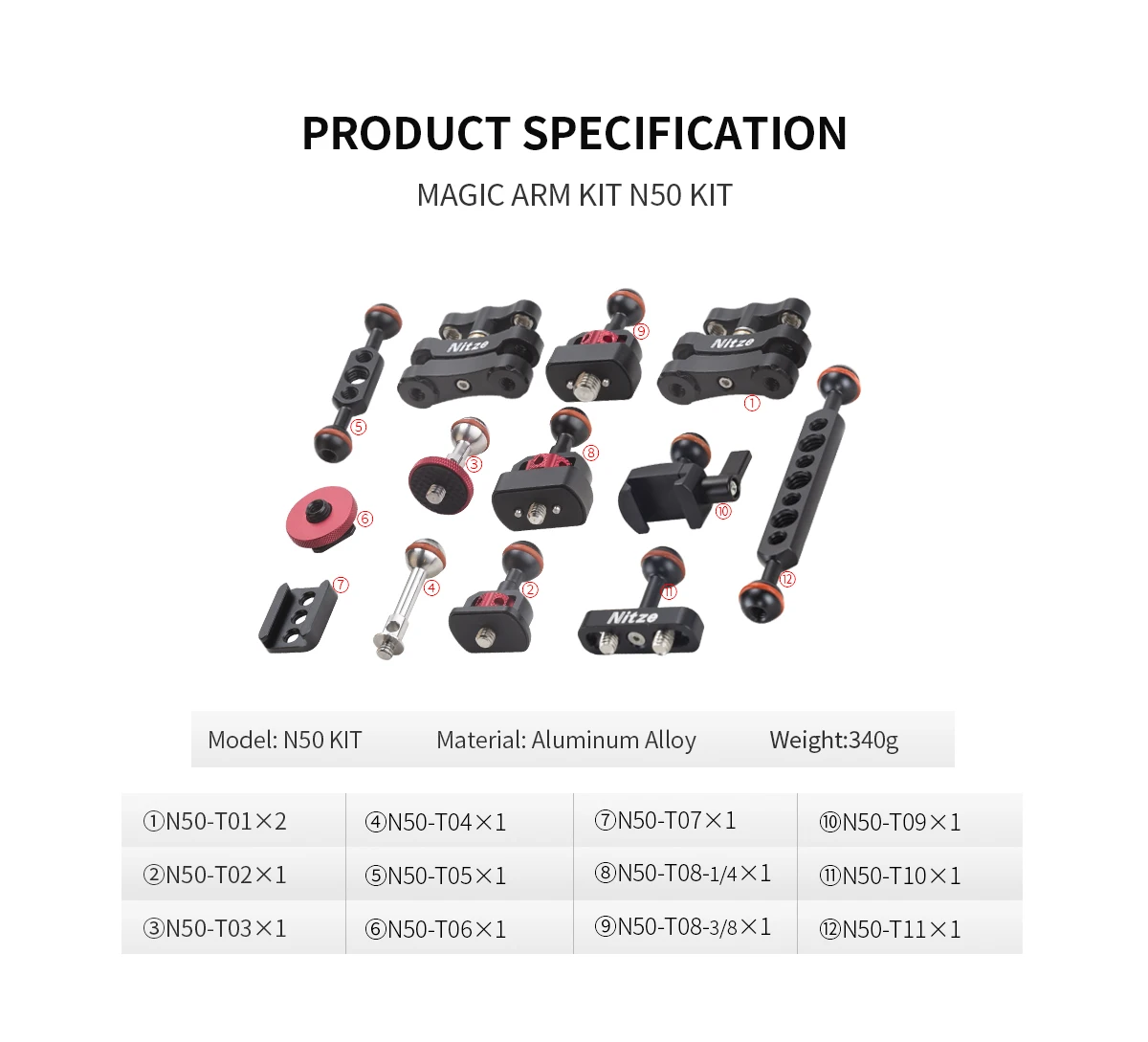 NITZE MAGIC ARM KIT - N50-KIT Nitze N50-KIT magic arm состоит из девяти видов интерфейсов и двух удлинительных стержней