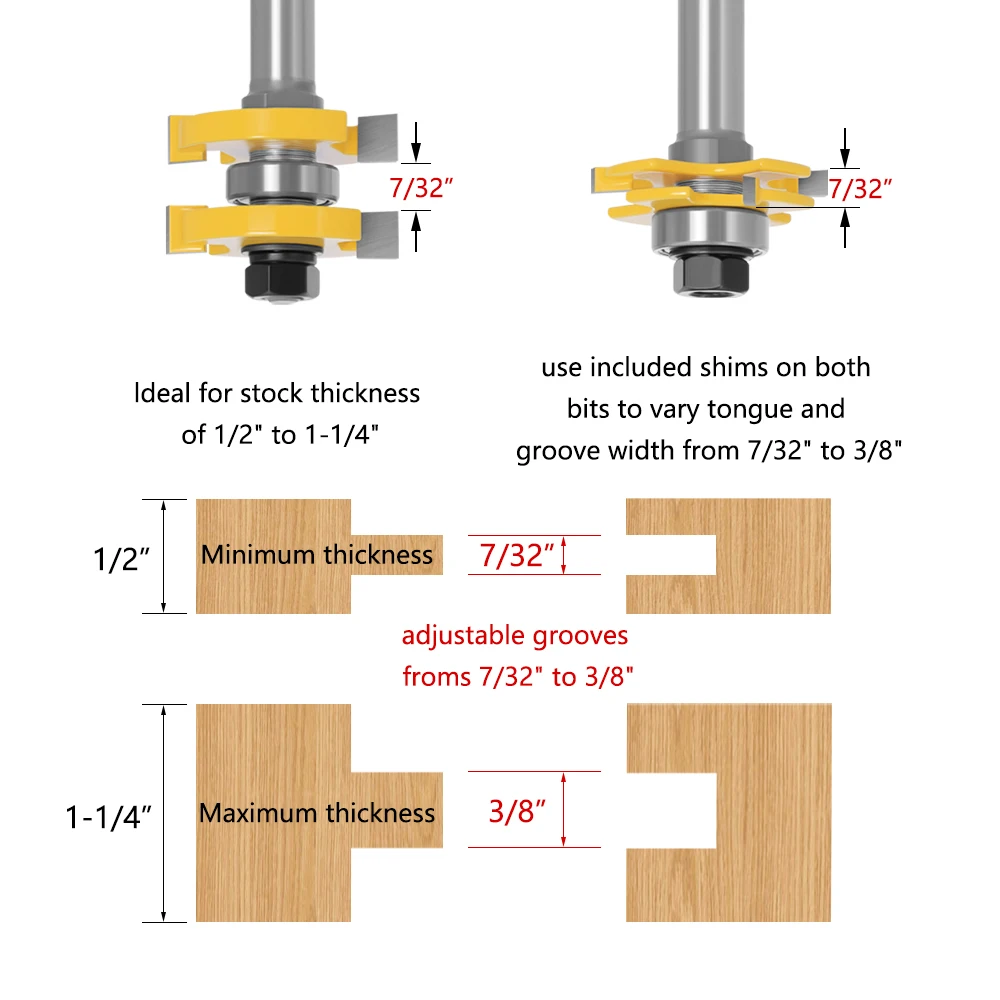LA VIE 2 шт. набор 12 мм 1/2 "хвостовик резак для шифона Напольный Деревянный бит Т Тип Регулируемый паз и язычок фреза 3 Зубья фреза для деревообработки