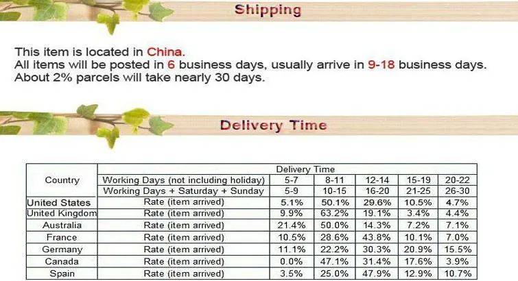 Когда посылка прибудет на вашу таможню, пожалуйста, оплатите налог и возьмитеПосылки, мы не несем ответственности за любые таможенные пошлины или налог на импорт.