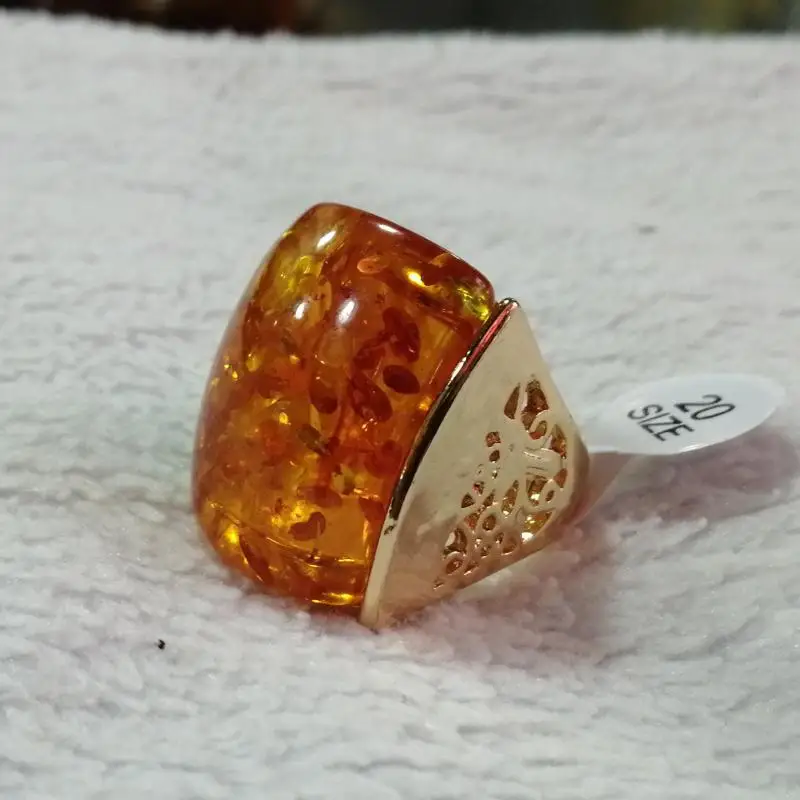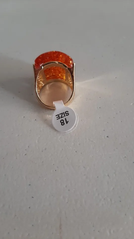 28 января 2022Кольцо очень красивое, камень имитация янтаря. Размер 19 оказался намного шире. Но яркий привлекательный вид. Пойдет на указательный палец, а хотела на средний. Можно носить как кольцо для шейного платка.