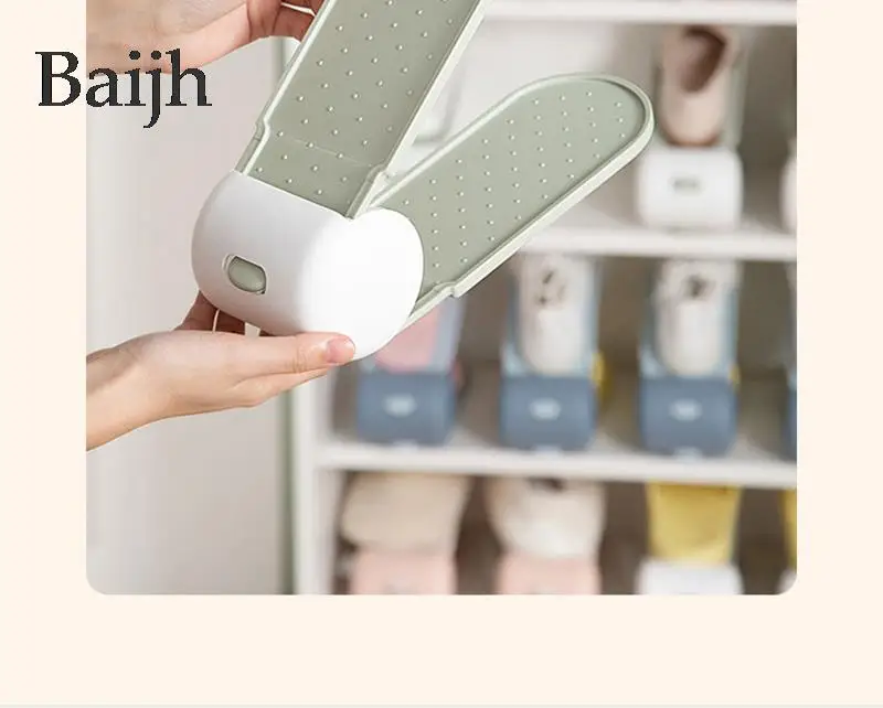 Solid color fourth gear adjustable shoe rack household items Double shoes rack Creative Plastic Shoes Rack Organizer Space-Saving Storage Adjustable Durable storage