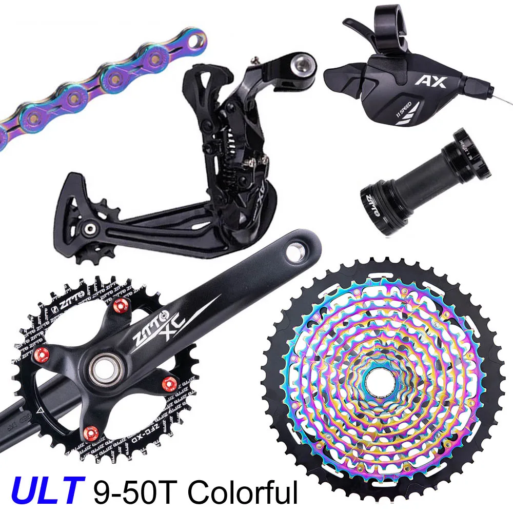 11 скоростей 9-50T кассета с радугой + 116 звеньев Радужная EL цепь + 11 S переключения передач и переключения передач + рукоятка