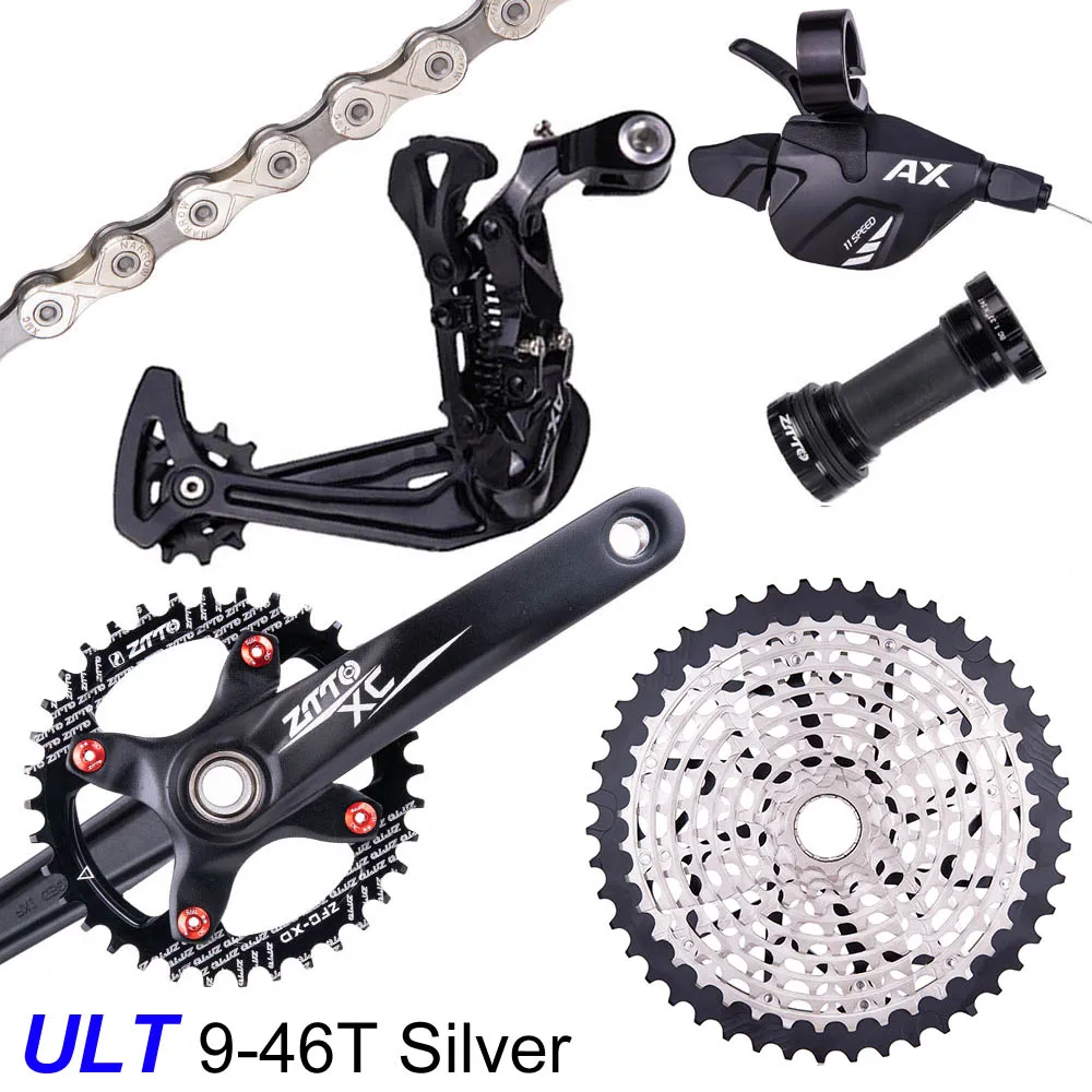 11 скоростей 9-46T Кассета из черного серебра + 116 звеньев серебряная цепь + 11 S переключения передач и переключения передач + рукоятка