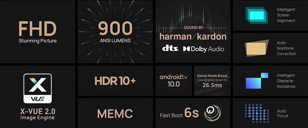 With Halo+, you get brilliant 1080p FHD and LED-powered hyper-focused 900 ANSI lumens in a compact build. Whether it's family game night or movies in the backyard, Halo+ will make all your project remarkably brighter.