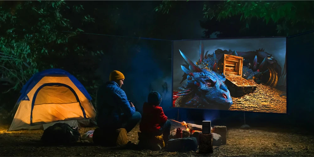 The ultra-portable Halo+ features superior engineering, a built-in 59W battery, and minimalist design all in one, providing you spectacular big-screen entertainment on the go. With 2 hours of playtime, your next camping trip will be nothing short of extraordinary.