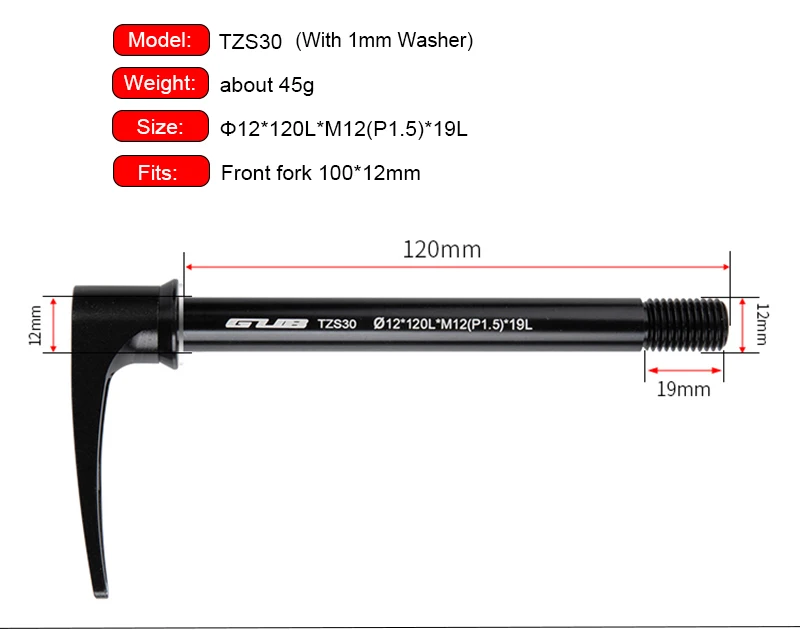 TZS30: Ф12 * 120л * M12(P1.5)* 19л (с прокладкой 1 мм)