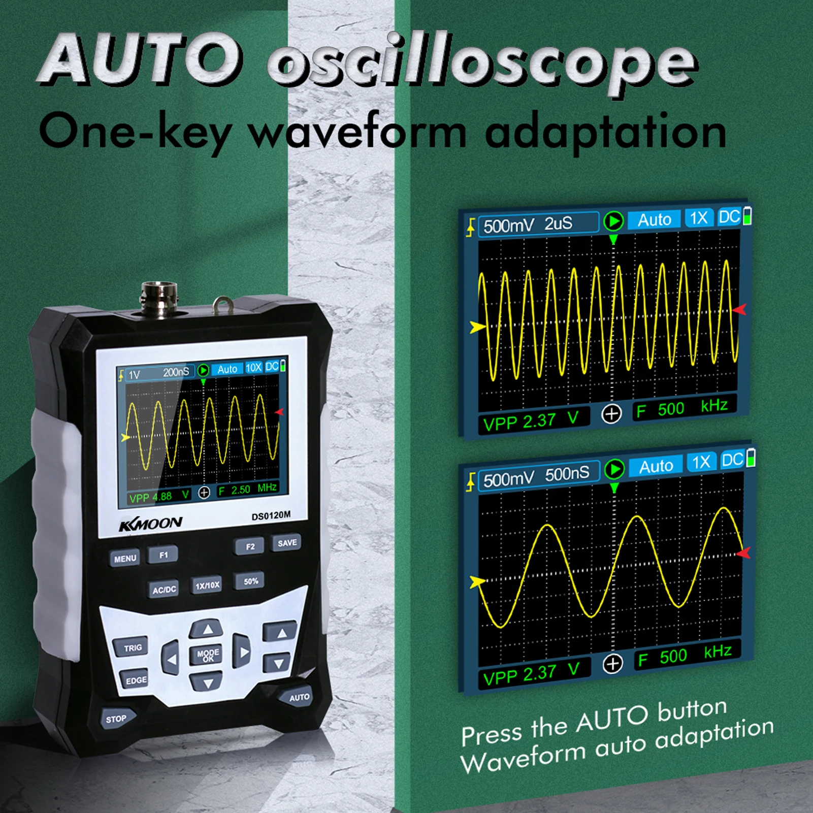 This KKmoon professional oscilloscope has 320 * 240 LCD screen, so you can see the data more clearly, the backlight id adjustable, you can change it in different occasion, it also has 4 speeds of square wa-ve signal output function, and in small size, so you can take it to anywhere you want to use it. Come on and try it.