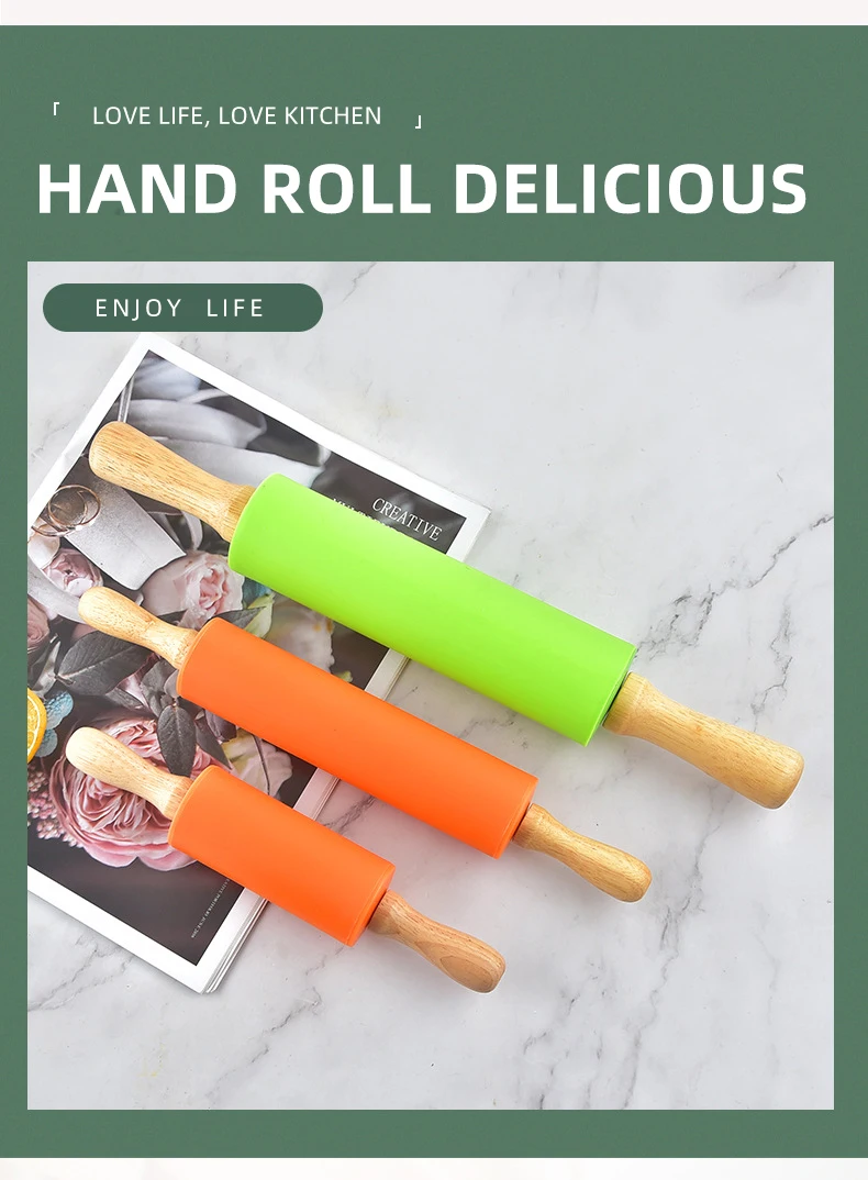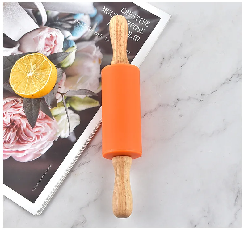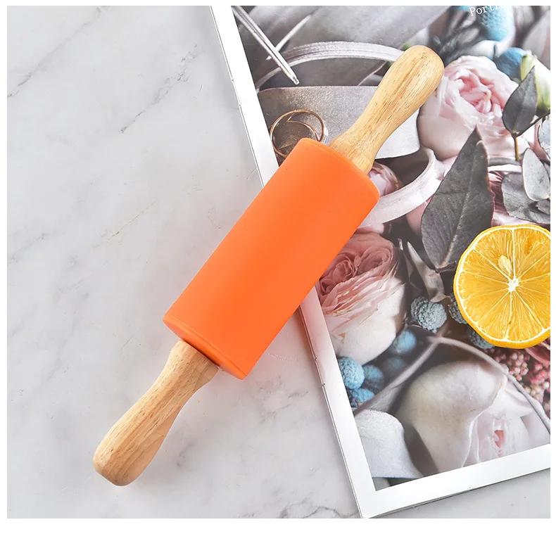 Антипригарный силиконовый роликовый штифт, деревянная ручка, тесто, мука, ролик, сделай сам, кухонные клецки, ролик для торта, лапша, кухонная утварь, инструмент для выпечки
