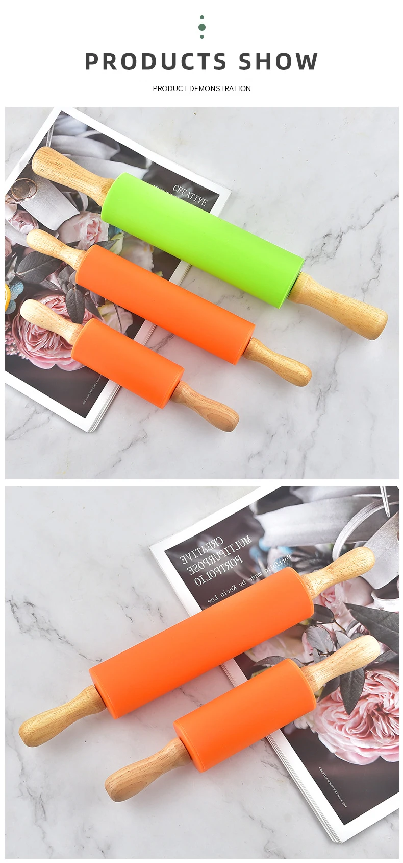 √ Силиконовый вращающийся силиконовый ролик и удобная деревянная ручка: без большого давления, твердый сердечник и удобная ручка могут выдерживать давление.