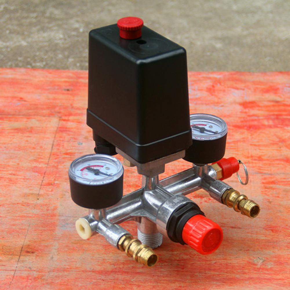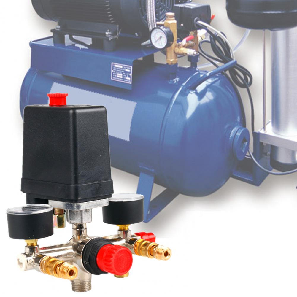 Регулирующий клапан с переключателем давления, нормально закрытый Регулируемое давление 20 мм разъем 90-120PSI реле давления Регулятор коллектора манометры для воздушного компрессора