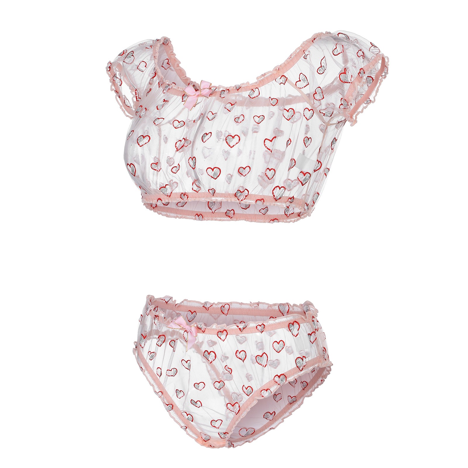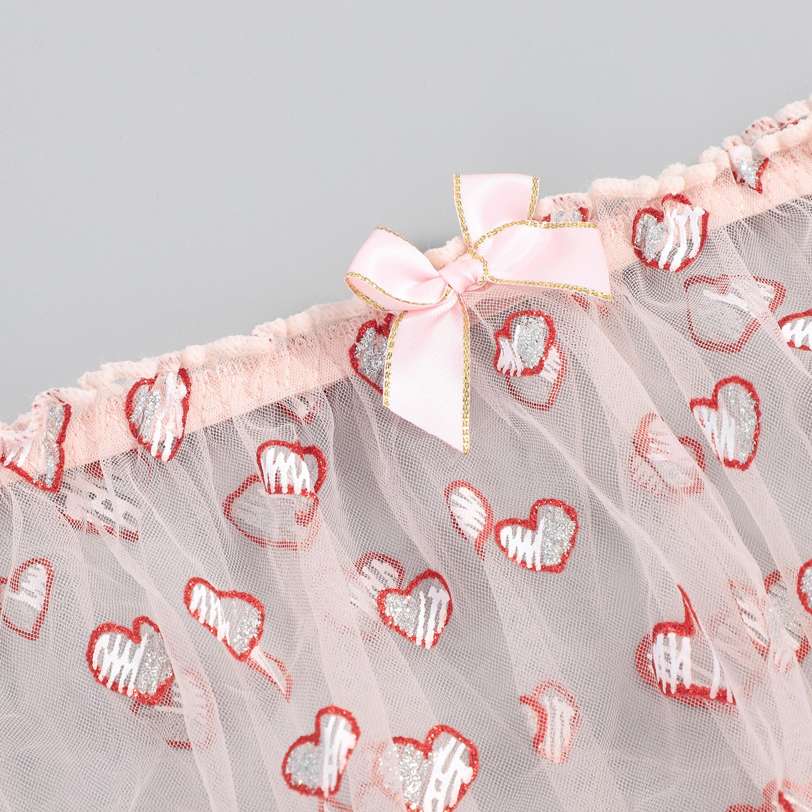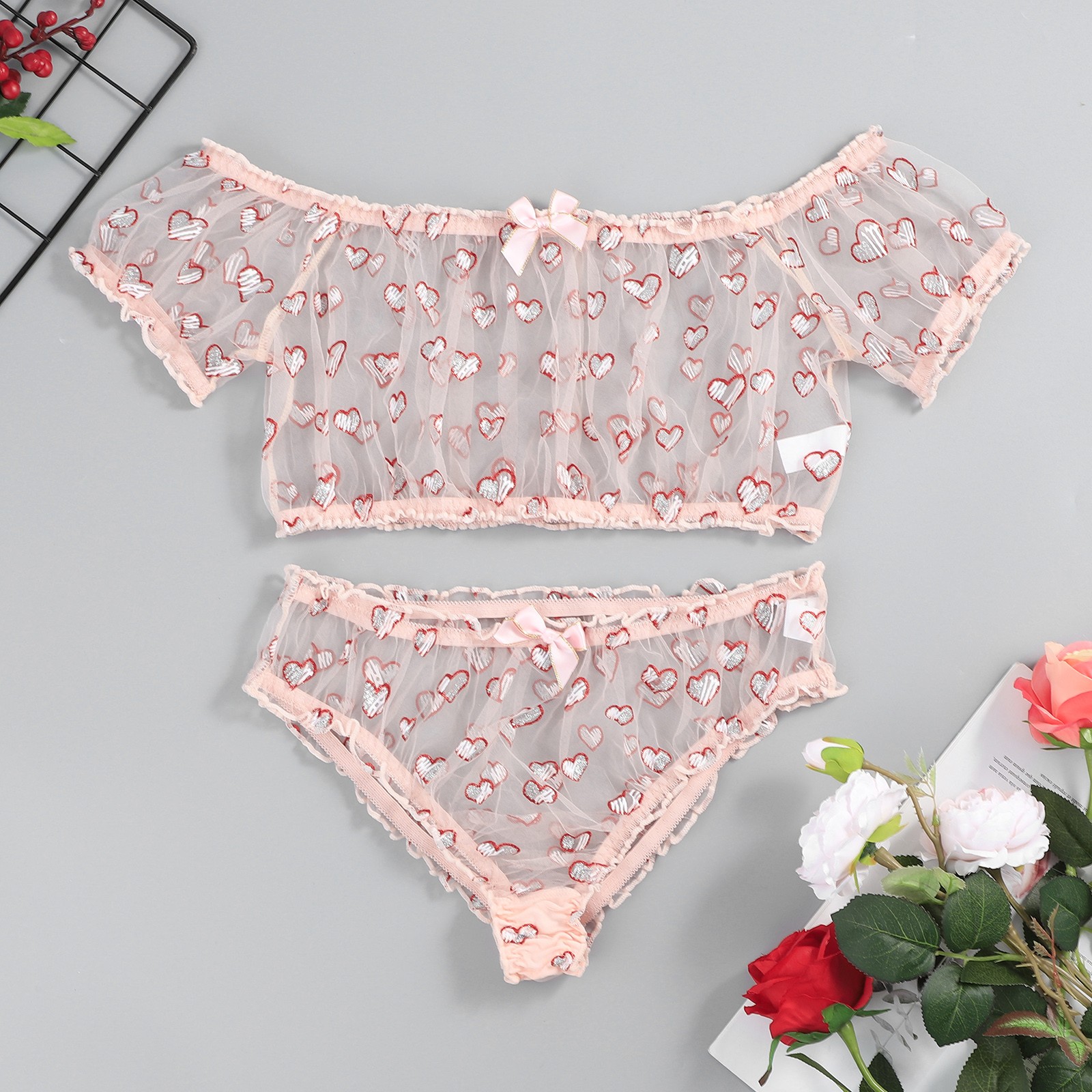 Women's See-through Mesh Heart Print Sexy Bra Underwear Without Steel Ring Sexy Lingerie Two-piece Suit