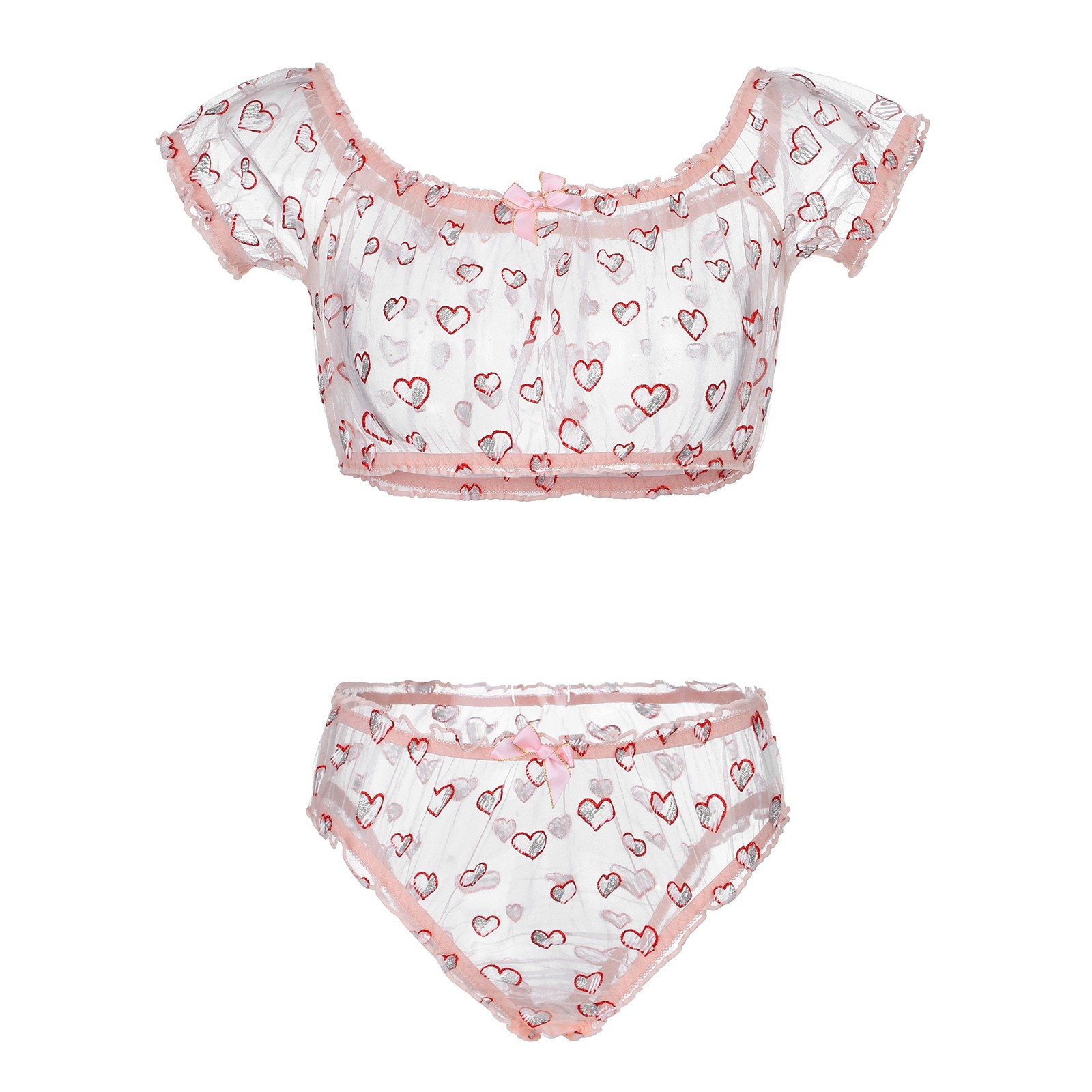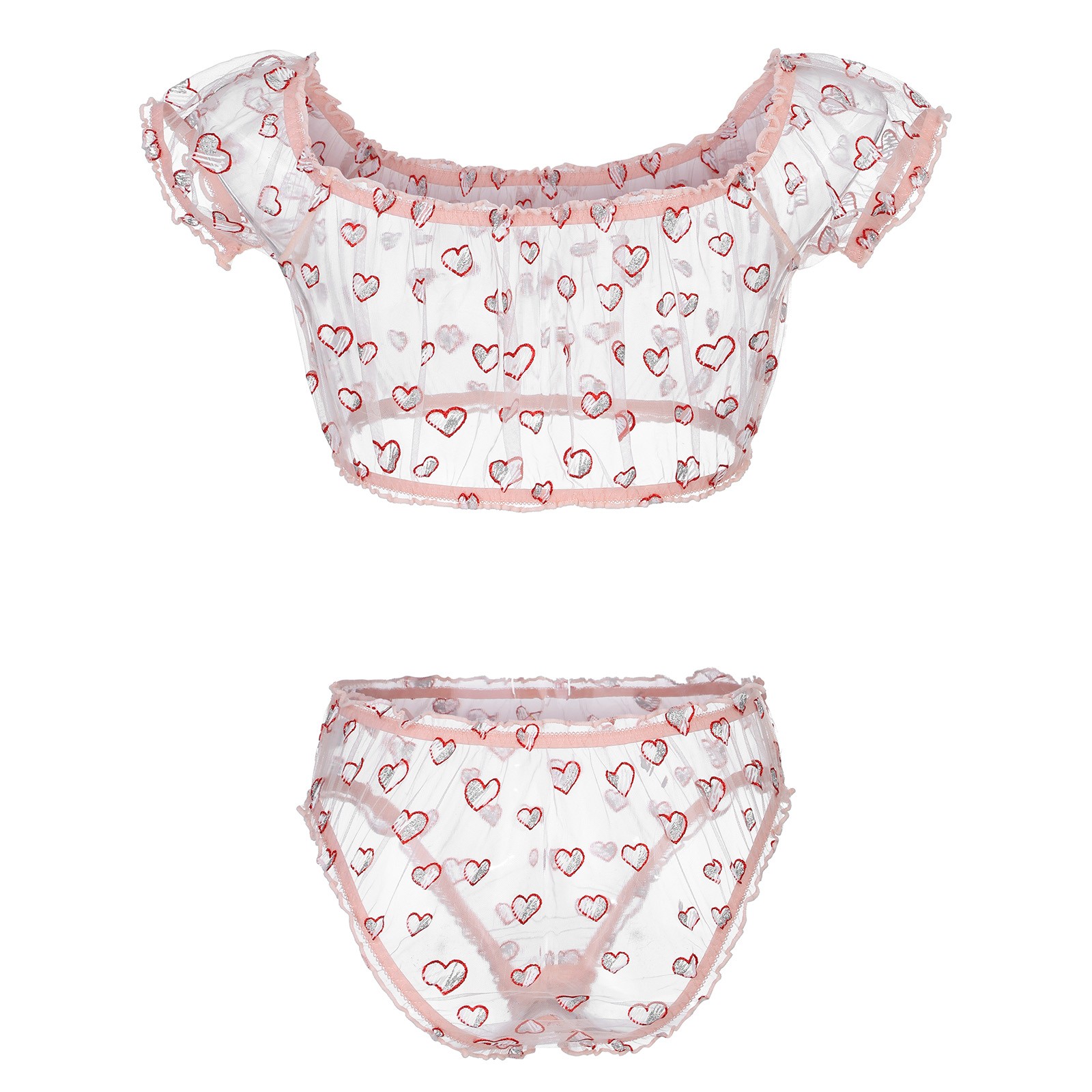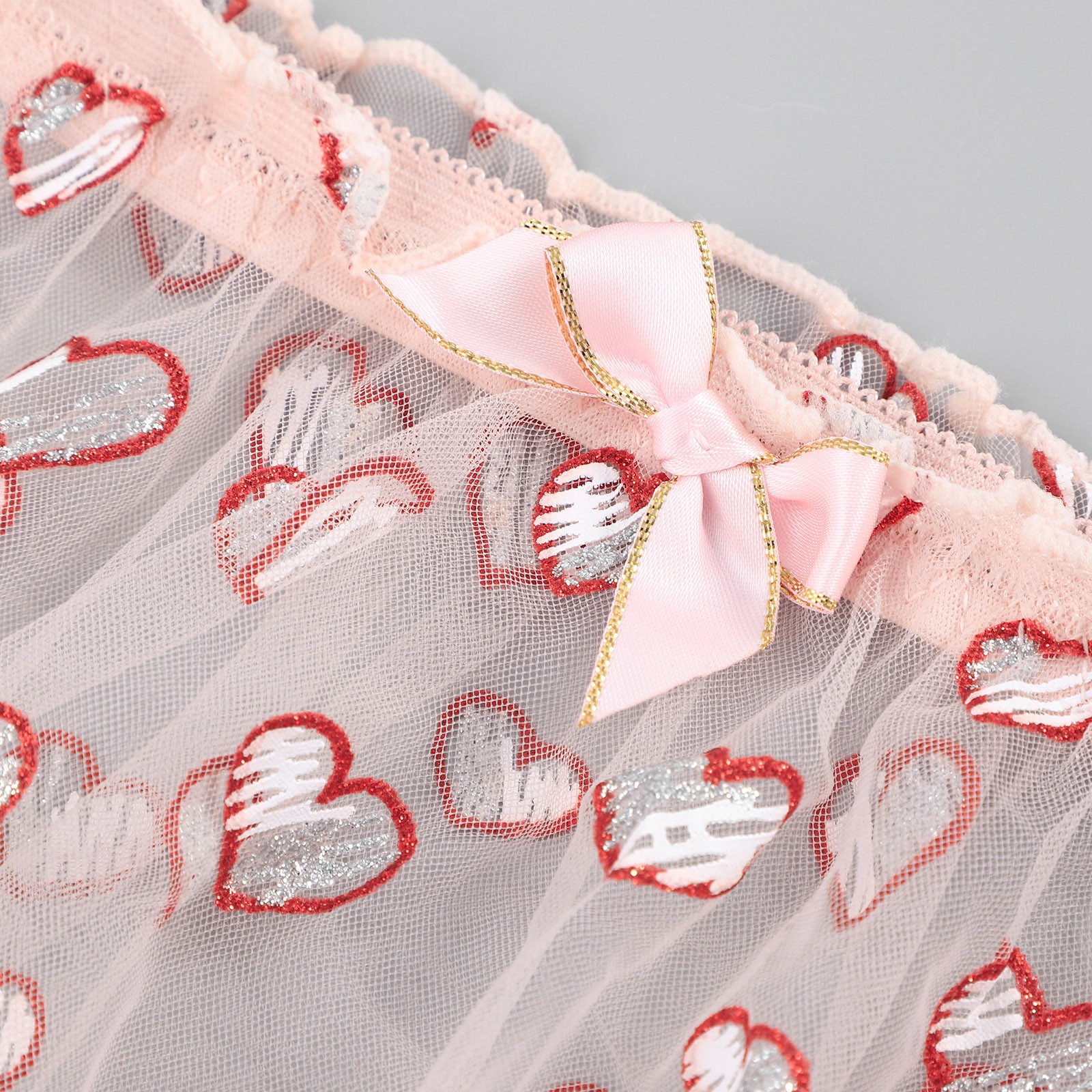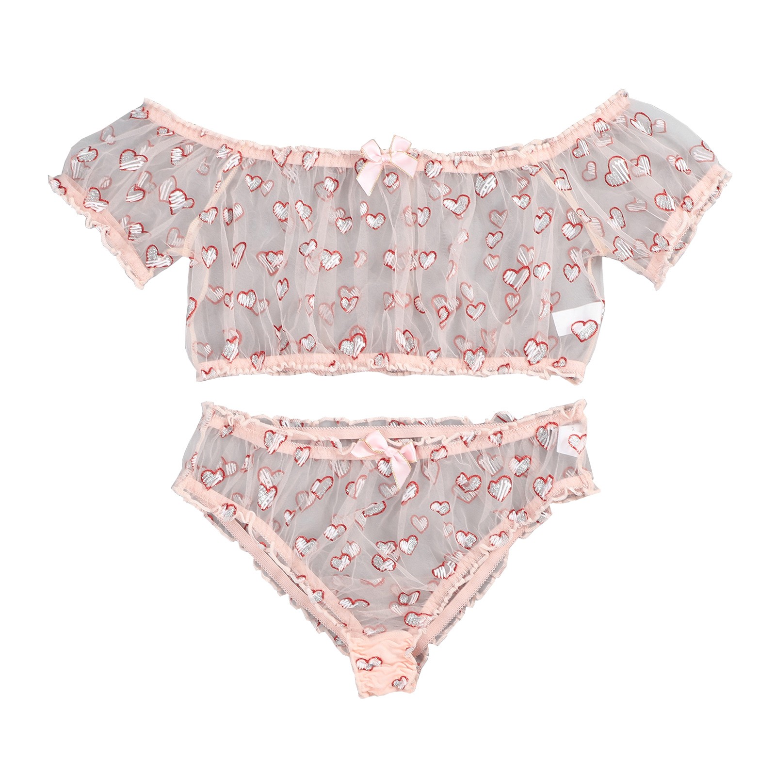 Women's See-through Mesh Heart Print Sexy Bra Underwear Without Steel Ring Sexy Lingerie Two-piece Suit