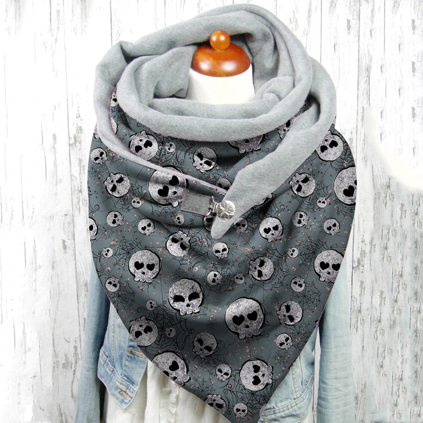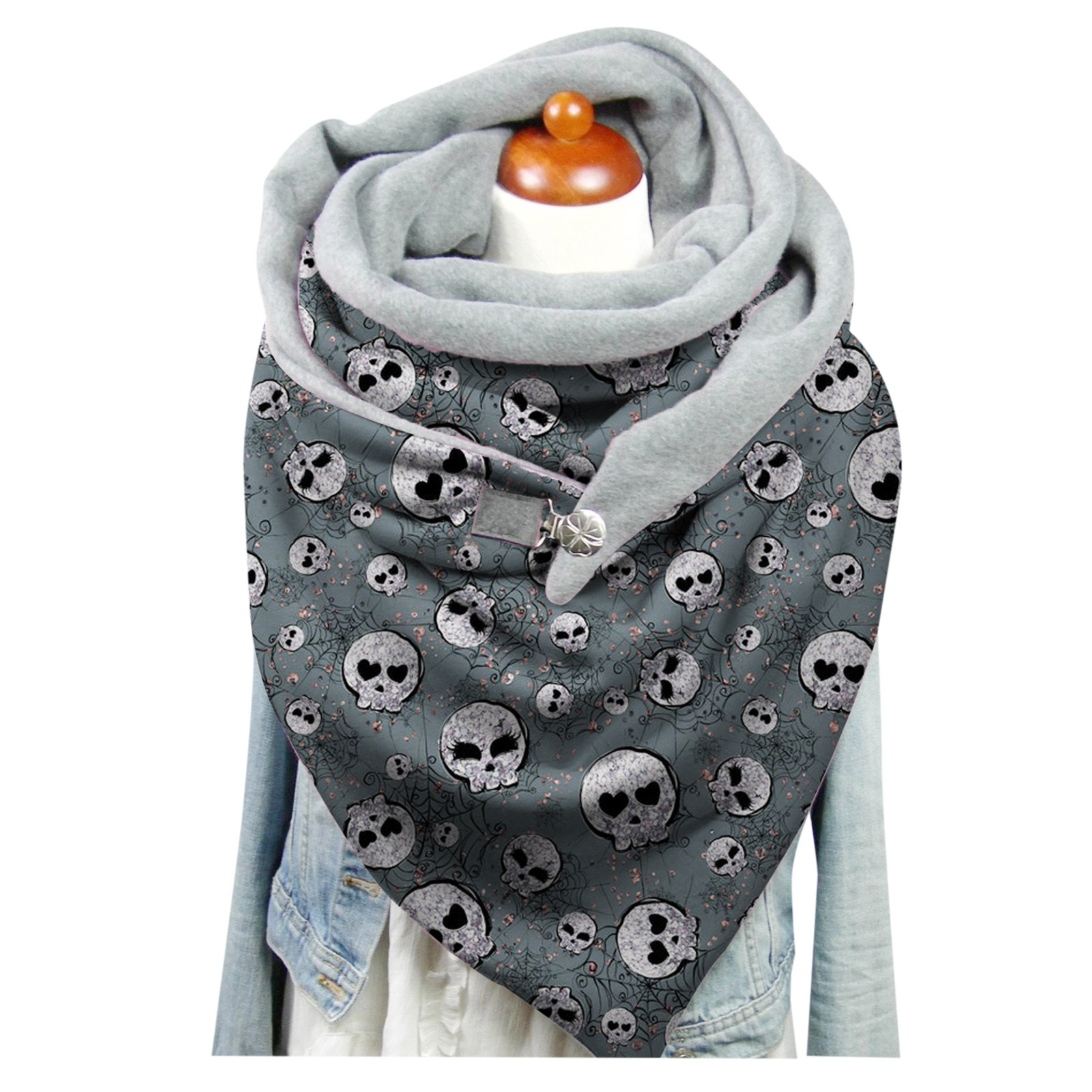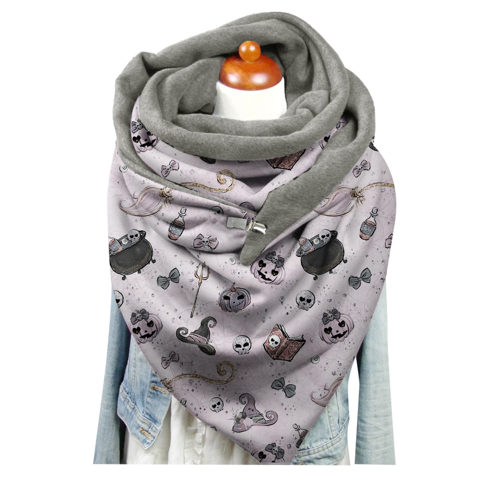 Модные зимние мягкие повседневные теплые шарфы на пуговицах с принтом на Хэллоуин