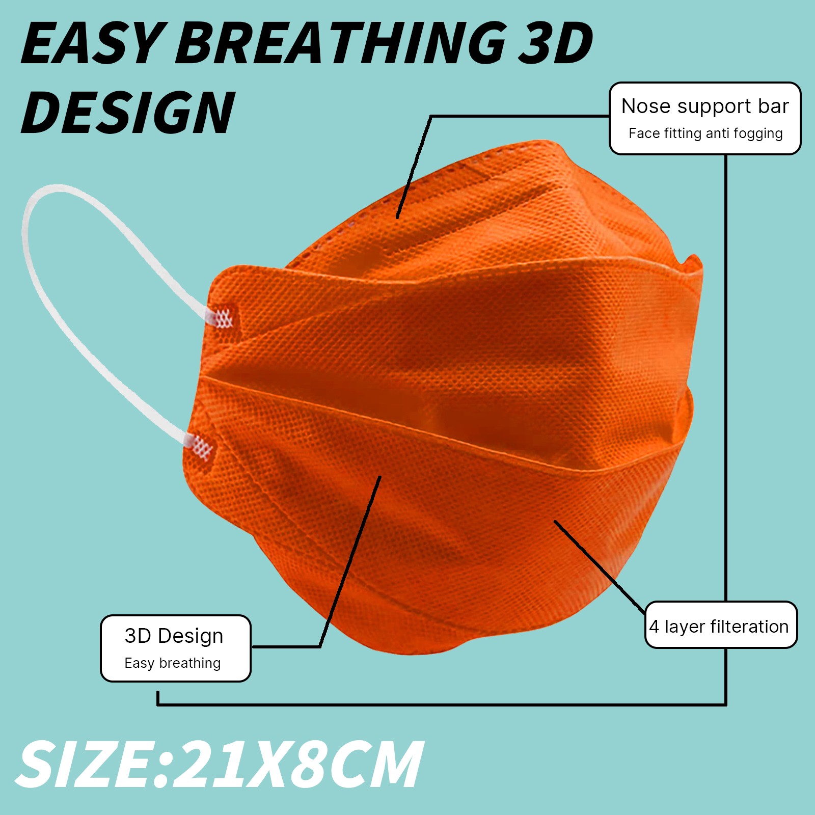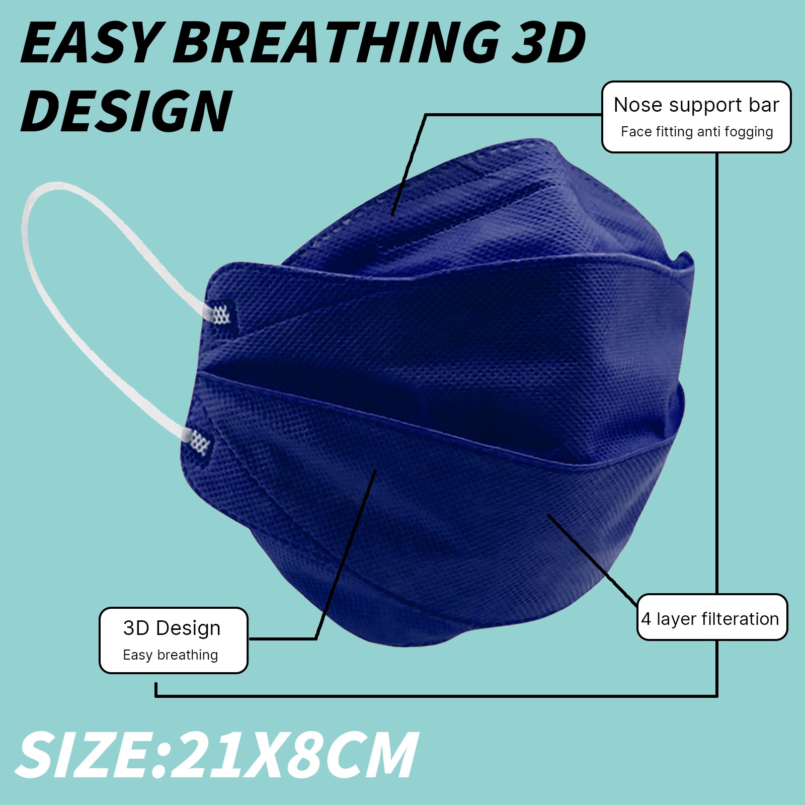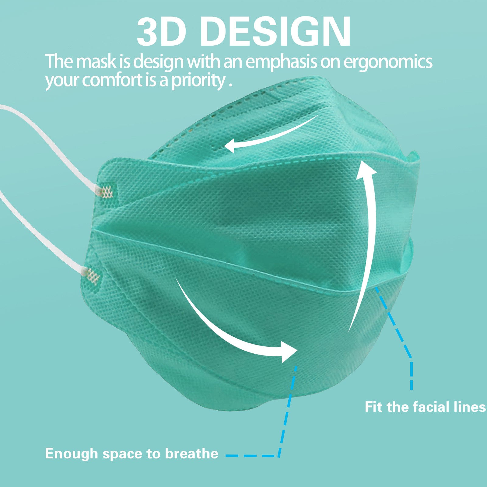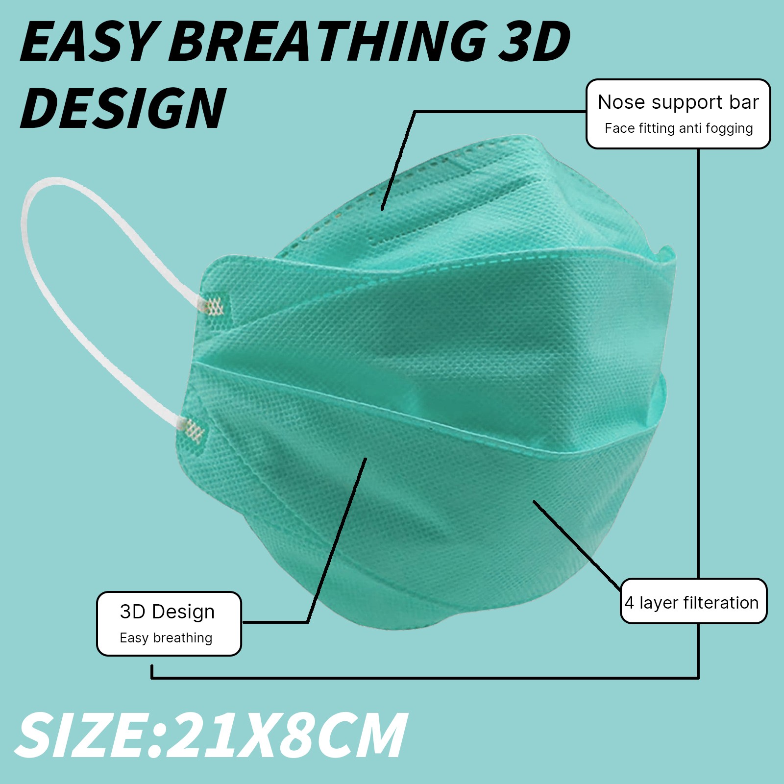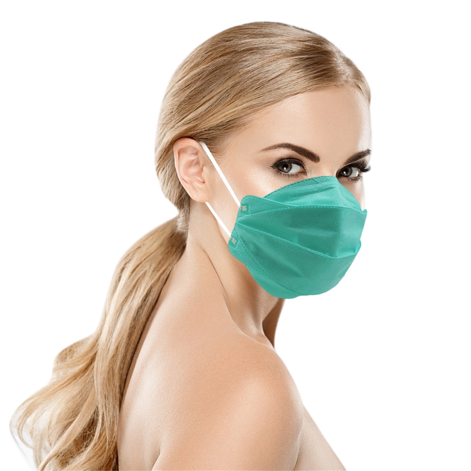 Четыре слоя, защитная фильтрация, которая включает в себя нетканую ткань снаружи, расплавленный тканевый фильтр в середине и мягкую нетканую ткань внутри для комфорта.