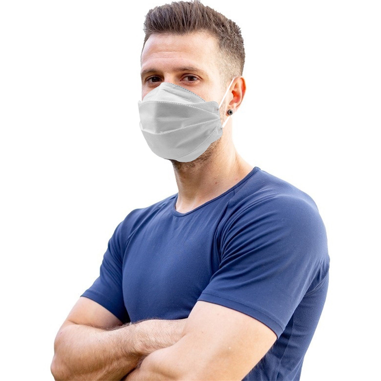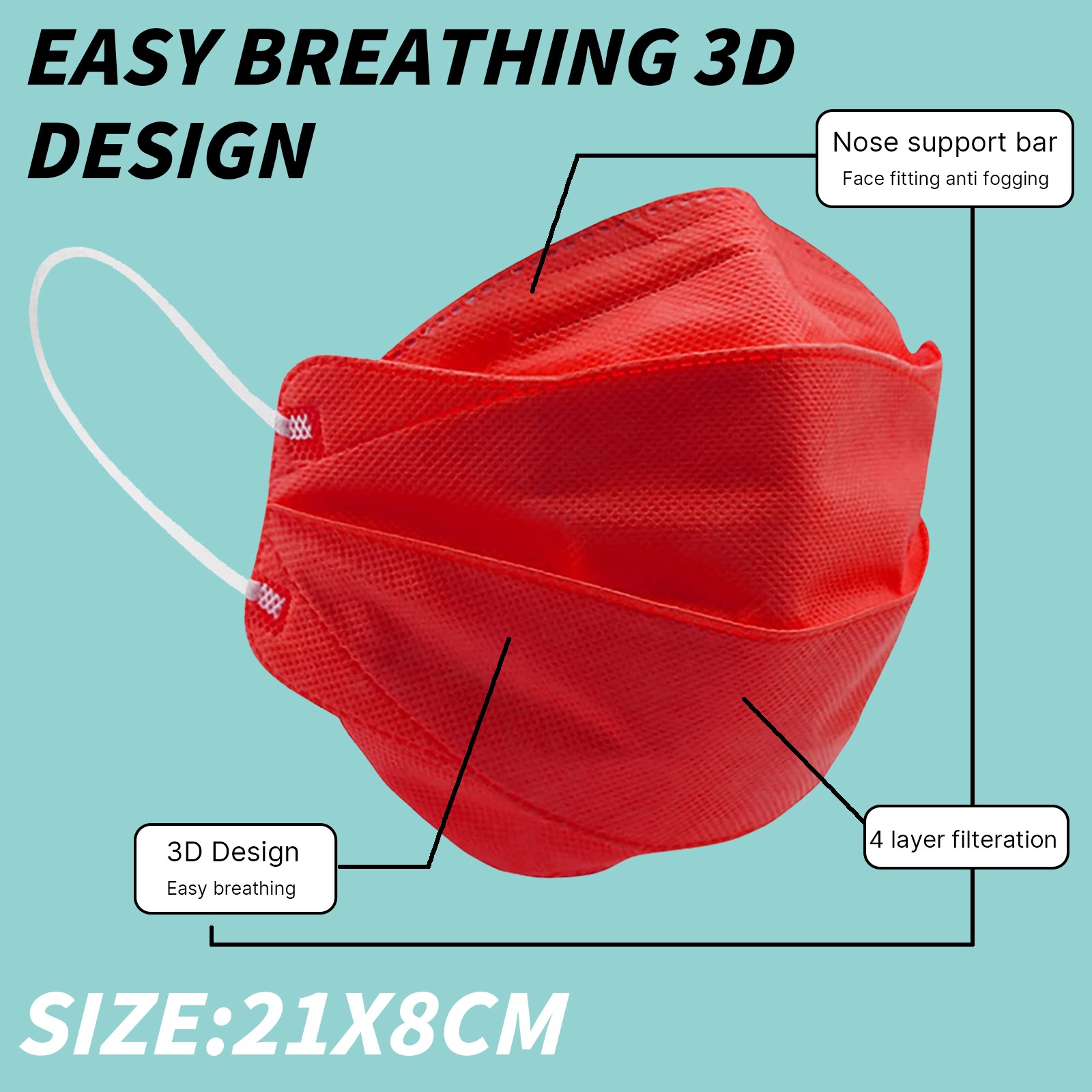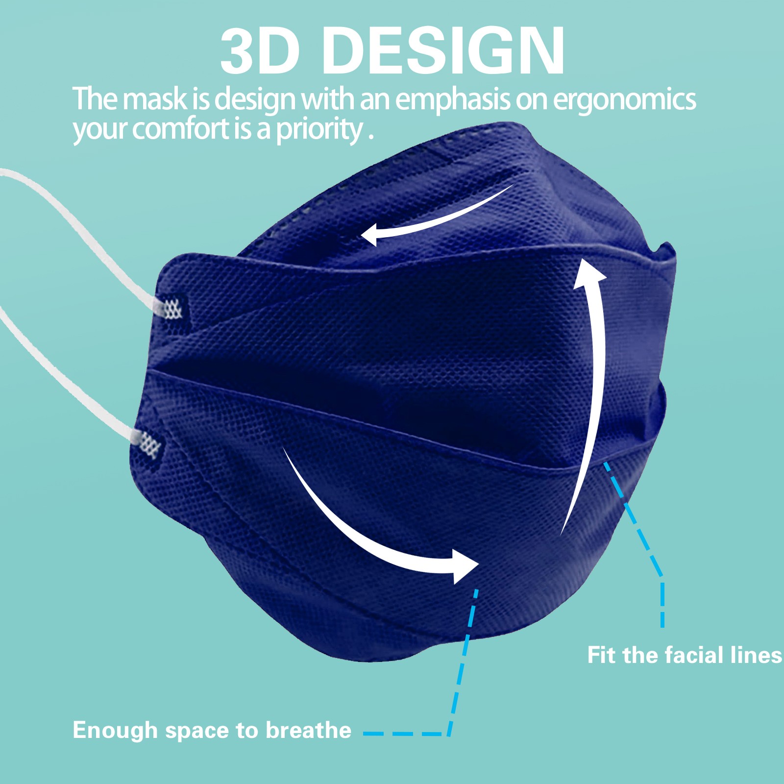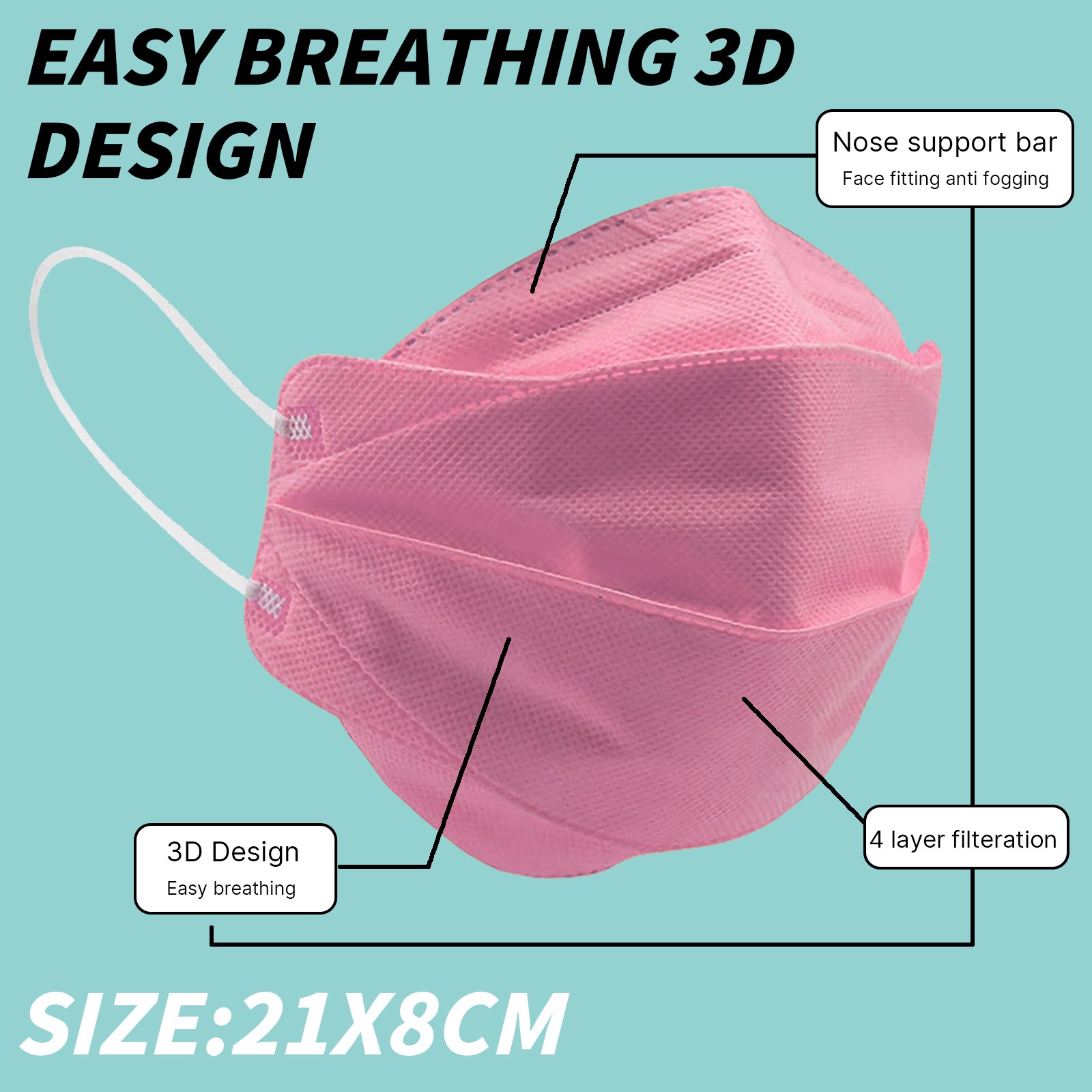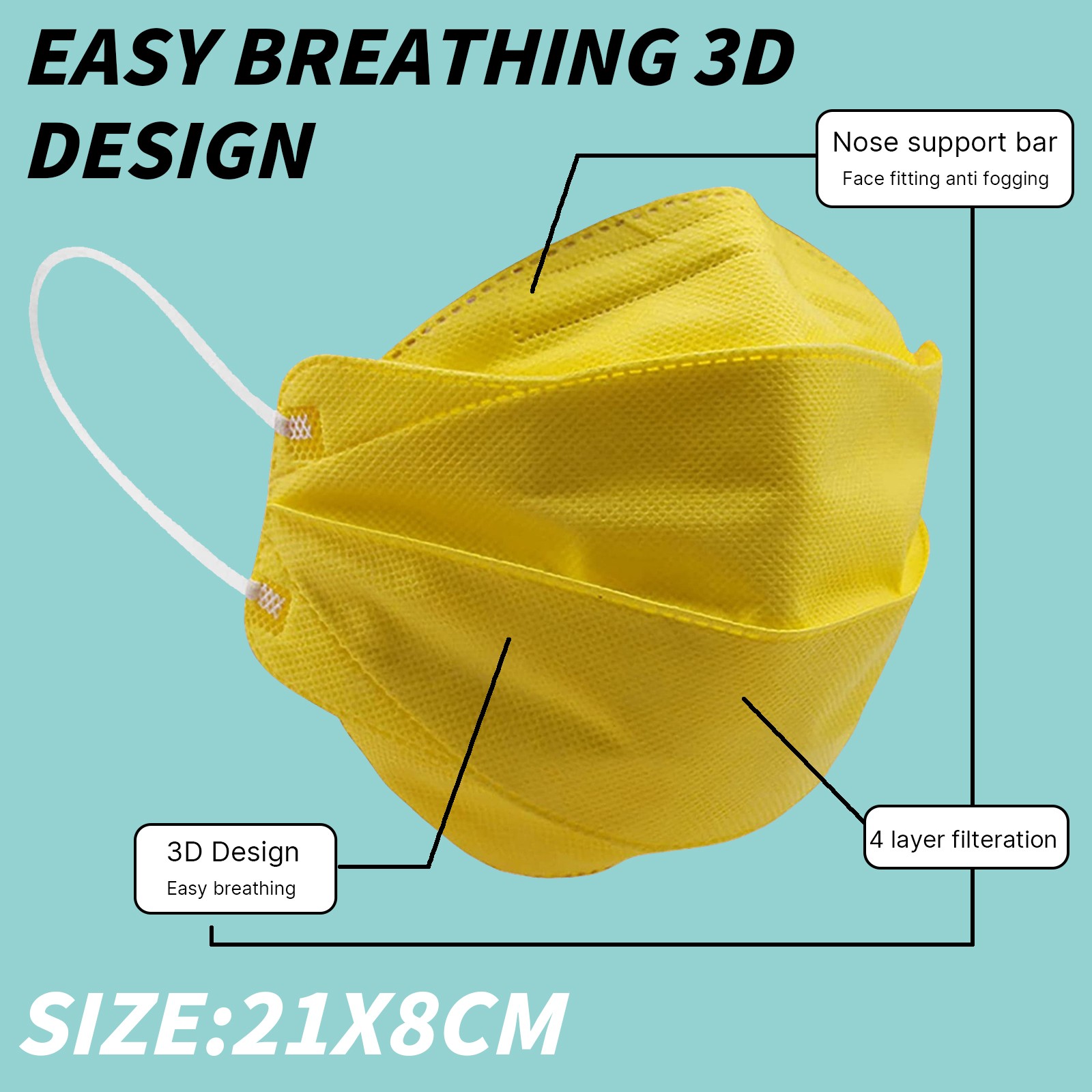 Четыре слоя, защитная фильтрация, которая включает в себя нетканую ткань снаружи, расплавленный тканевый фильтр в середине и мягкую нетканую ткань внутри для комфорта.