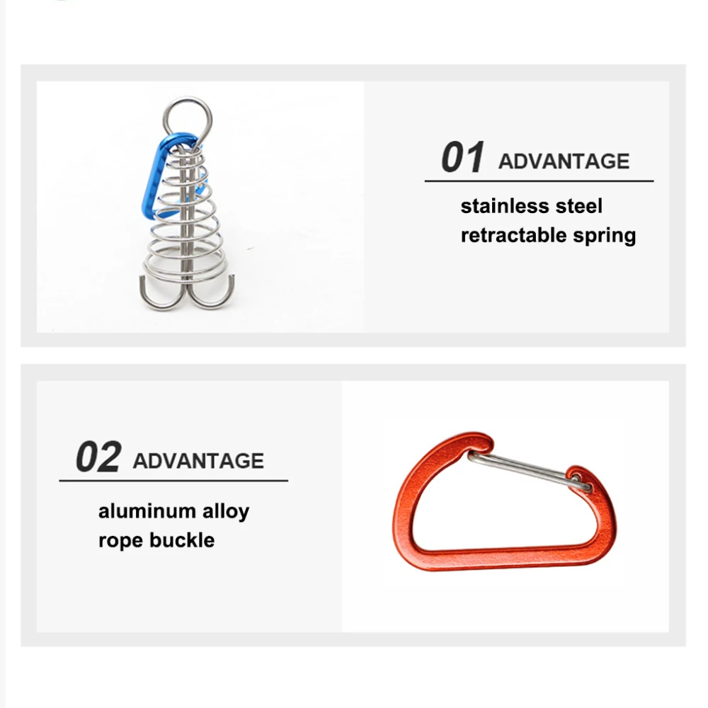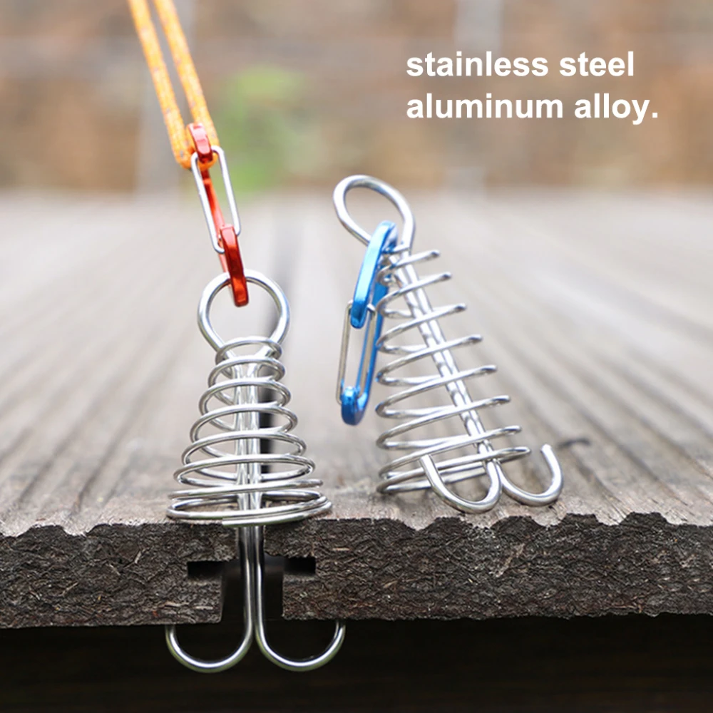 Сверхмощные пряжки: колышки для палаток разработаны с прочными пряжками, обеспечивая надежное сцепление с веревками.
