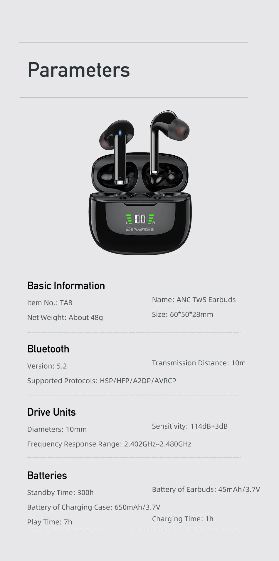 Awei TA8 активный шум Cancellatio чистый и HiFi, ANC TwS наушники