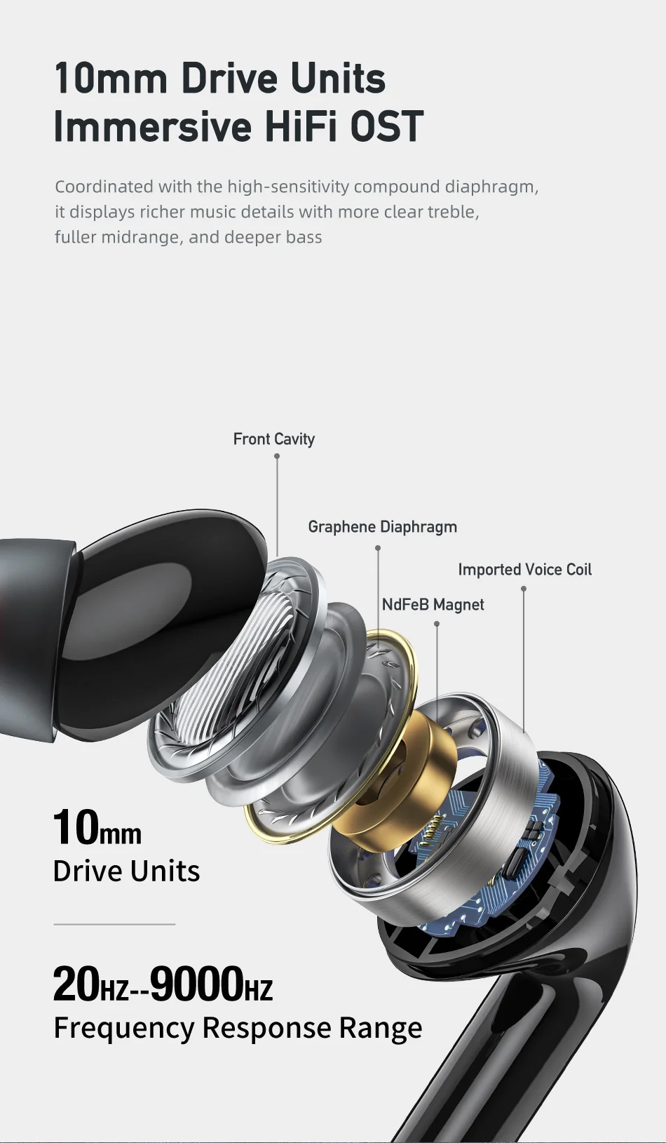 10 мм приводные устройства, lmmersive HiFi OST совместимы с высокочувствительной комбинированной диафрагмой, она отображает более насыщенные музыкальные детали с более четкими высокими частотами, более полными СЧ и более глубокими басами