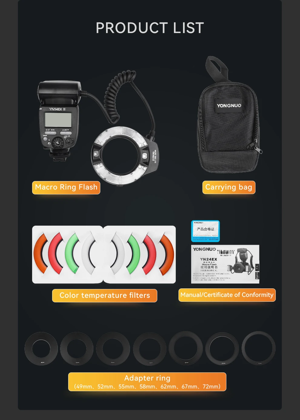 1 x Yongnuo YN-14EX II Макросъемка кольцевой LITE вспышка светильник