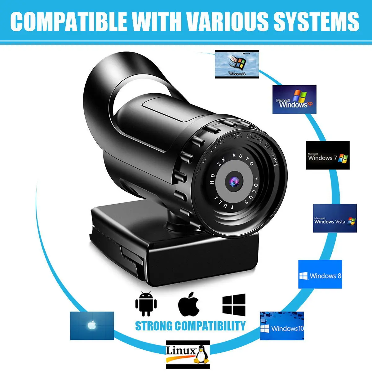 Встроенный звукопоглощающий микрофон, ваш голос может быть четко услышан в 10 метрах. Отличное качество и изысканный внешний вид. Специализированные оптические линзы, высокая точность. Предназначен для ноутбуков и настольных компьютеров. Автоматический баланс белого, Автоматическая коррекция цвета. Автоматически регулируемый фокус. Поддержка CC2000, AIM, Netmeeting, ICQ, MSN Messenger, Yahoo Messenger и Skype и т. д. Поддержка Mac OS 10,6 и aboveAndroid 7,1 и выше