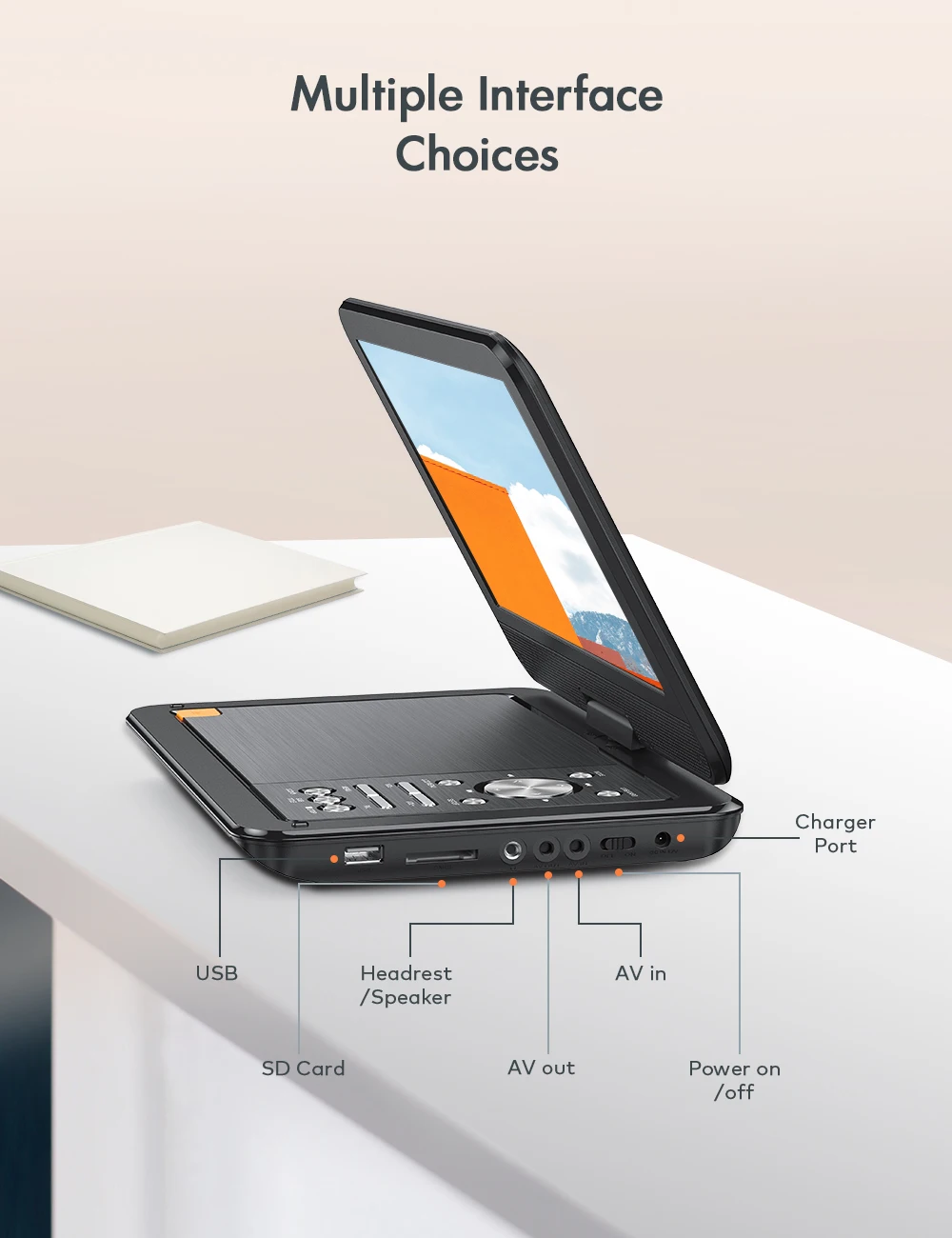 Портативный dvd-плеер APEMAN поддерживает dvd-диски из разных стран. Он может свободно переключаться на восемь языков, если диск поддерживает его. Когда у вас есть вечерние, вы можете подключить его к внешнему динамику, чтобы сделать звук громче.