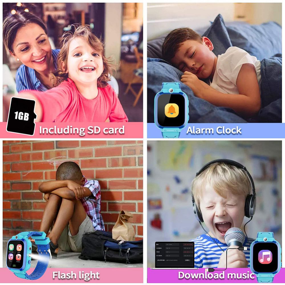 3. Универсальные детские наручные часы: Детские Смарт-часы оснащены всем, что вам нужно для умных часов. Такие как игры, музыка, камера, Личное видео, будильник, шагомер, калькулятор, календарь, обои, секундомер, фонарик, Регулировка громкости и т. д. Это лучший подарок для мальчиков и девочек 4-12 лет. Это лучший выбор для детей, чтобы развлекать и учиться в одном.