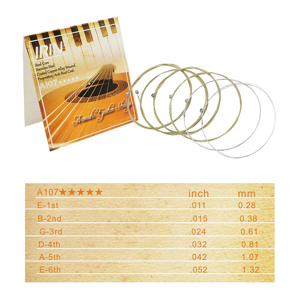 Набор струн универсален для фольклорной гитары, он оснащен сердечником из нержавеющей стали, покрытым медным сплавом, с собственной антикоррозийной технологией, ее мягким и теплым тембром, сильной прочностью, идеально подходит для гитарных плееров и профессиональной производительности.
