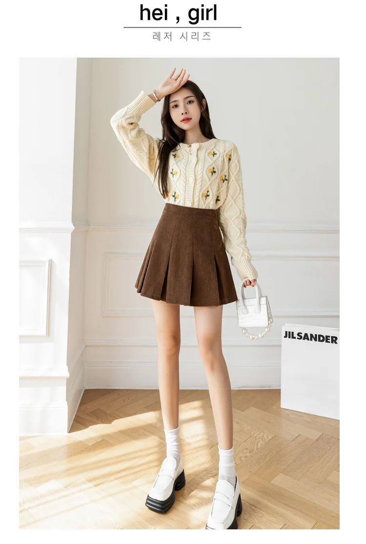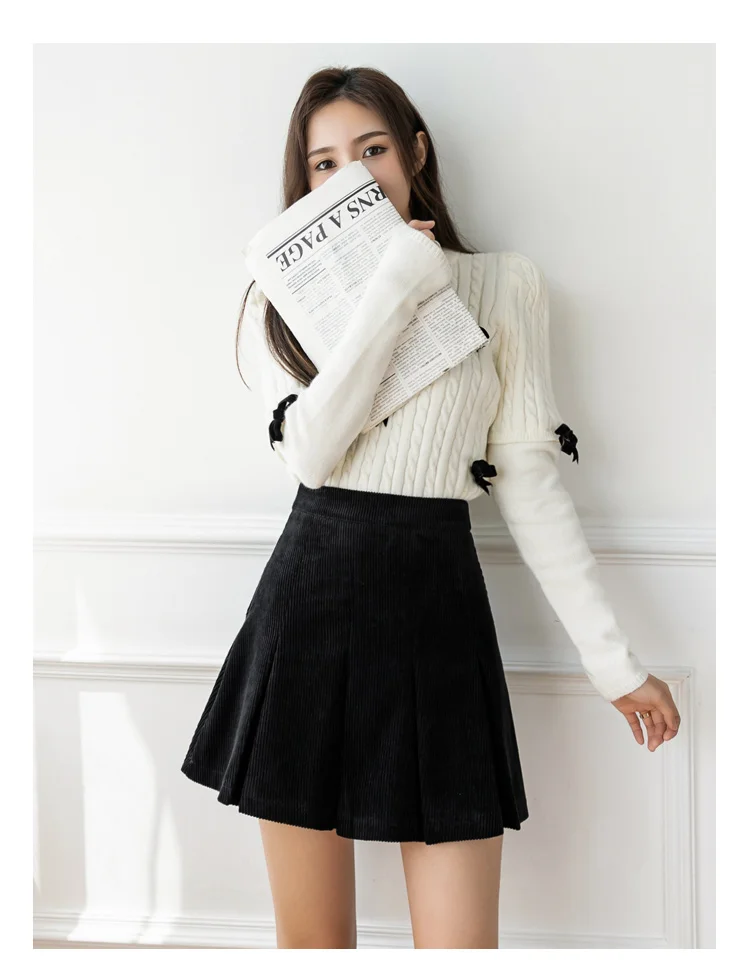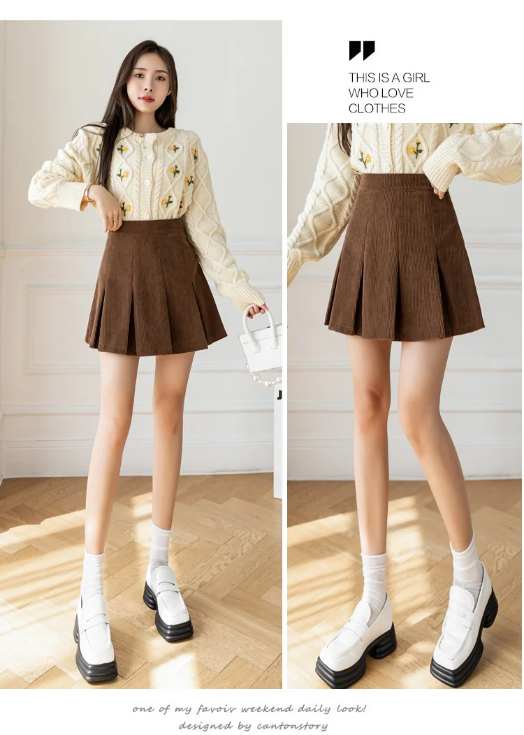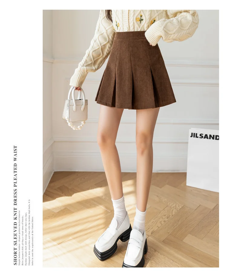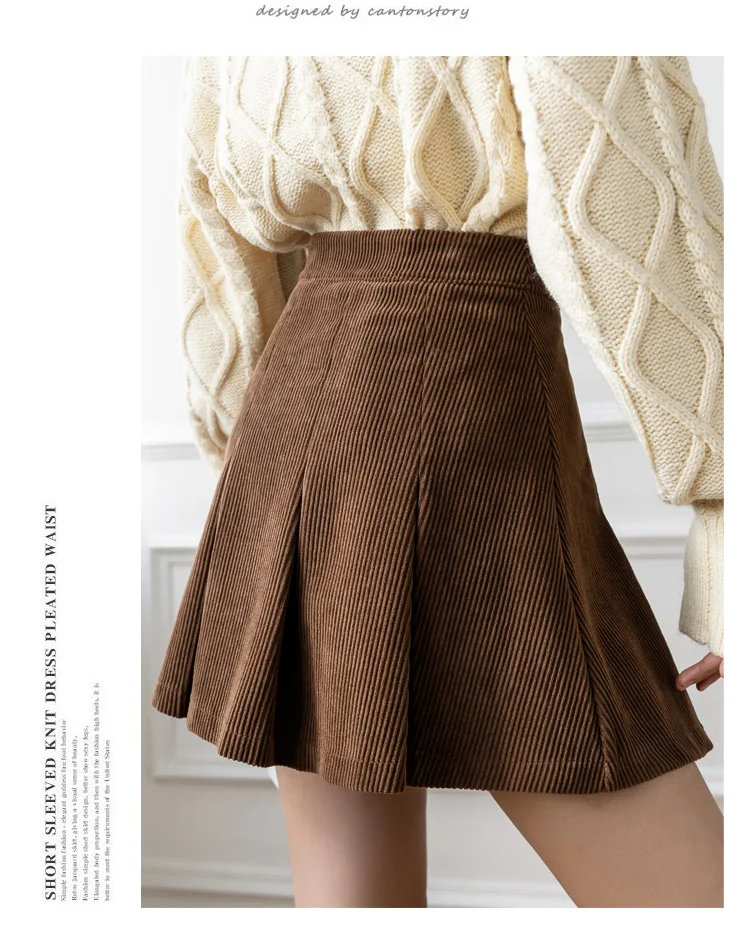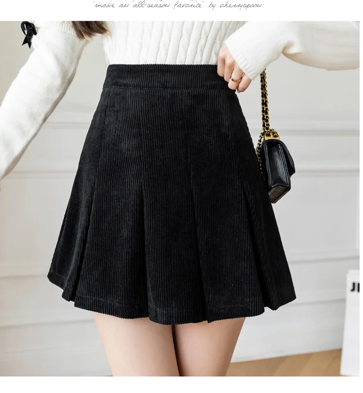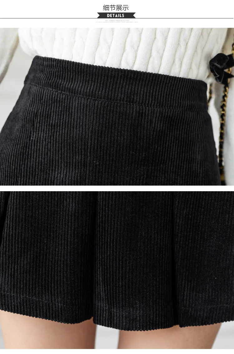 Корейские плиссированные юбки с высокой талией для женщин, осенне-зимняя Вельветовая юбка размера плюс, винтажная юбка-шорты Kawaii для девочек, цвет коричневый, черный, M277