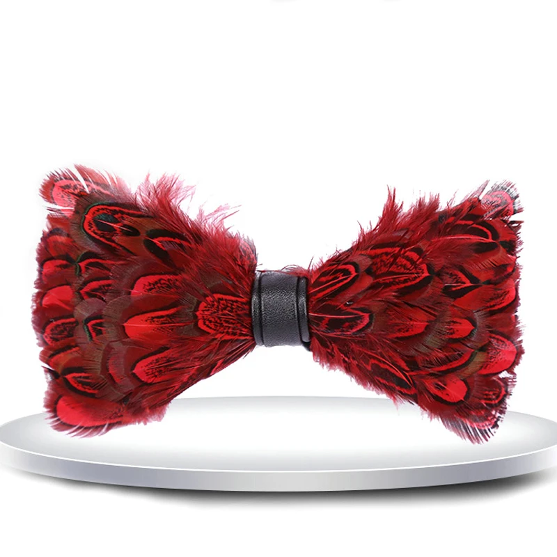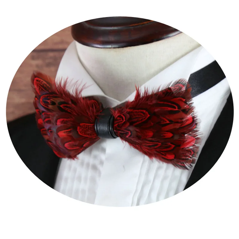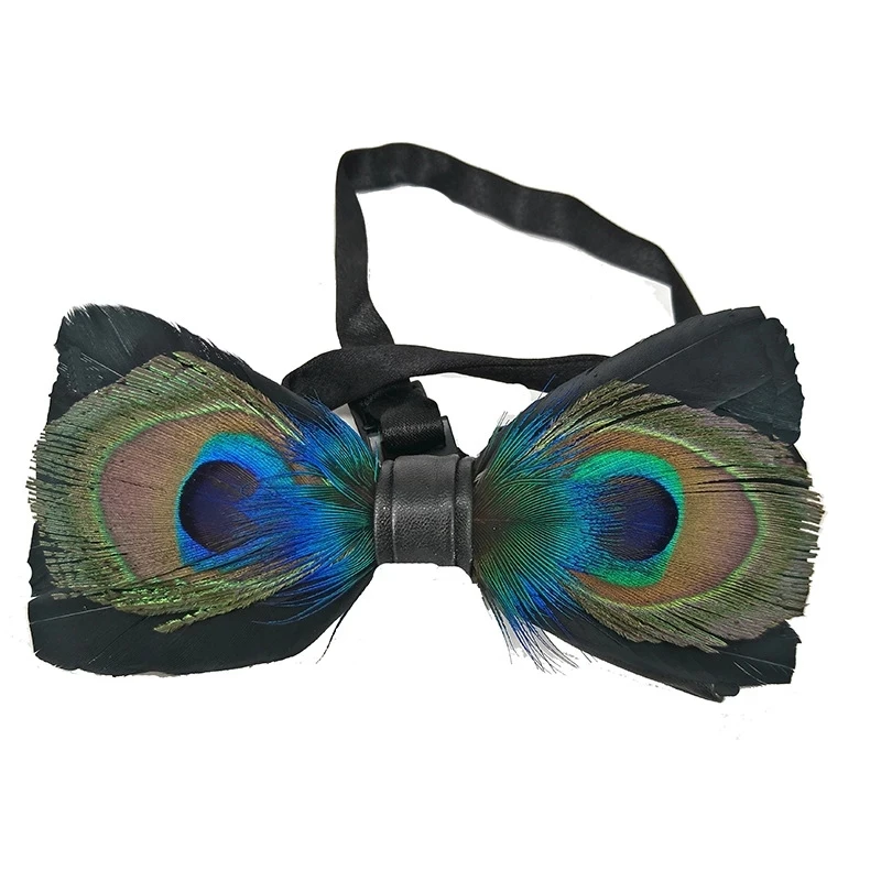 Галстук-бабочка ручной работы с перьями