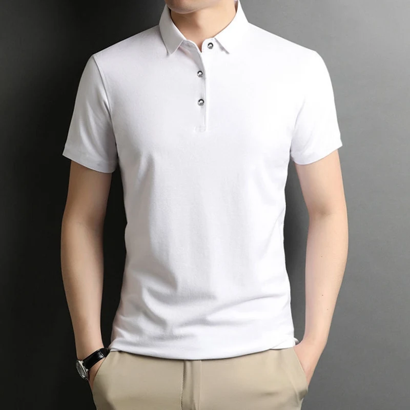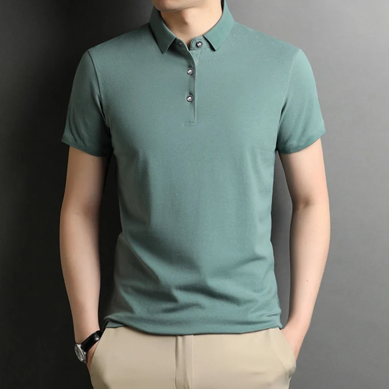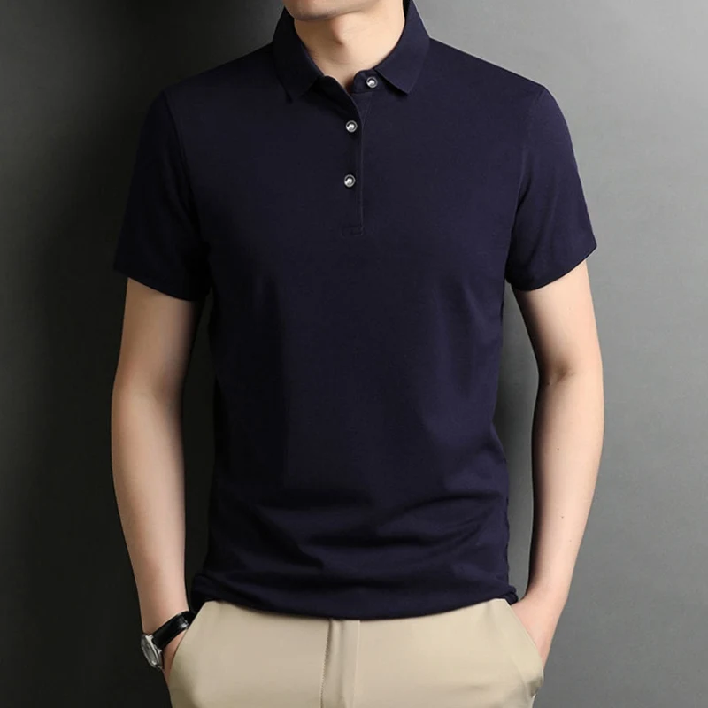 Летняя рубашка поло однотонная с коротким рукавом мужская рубашка с отворотом
